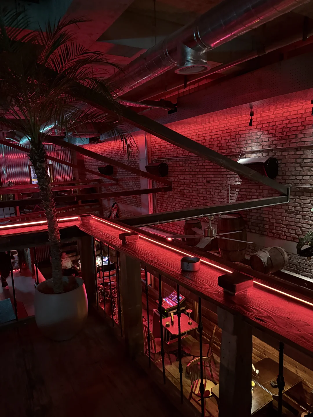 新开的美式复古bar ,调酒好有创意,我点的这个圣杯有点像番茄浓汤的味道 酸甜糯香,推荐推荐!(调酒都可以做成无酒精的) 因为老板是音乐人,所以店里有多元化乐种,像爵士、funky、摇滚、布鲁斯等。可以沉浸式即兴创作。