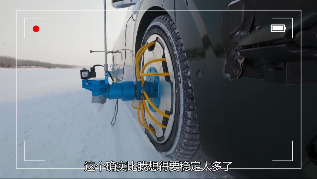内蒙古牙克石的冬季测试场是全国寒地汽车测试标杆场地,冬季平均气温低至零下22.7℃,每年有约110天以上的时间气温低于零下20℃,为车辆提供了严苛且稳定的极寒测试环境;冰封的湖面和广袤雪原为车辆提供了天然的低附着力测试路面。牙克石近期气温更是低至零下30℃,同时当地冰雪路面厚实,很容易打滑。这还没完,D19需要在对开路面上测试,并且车上满载6位乘客,还是同侧双轮爆胎;坦白来说,这样的测试条件,确实让人为D19捏了把汗。