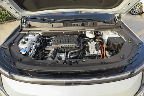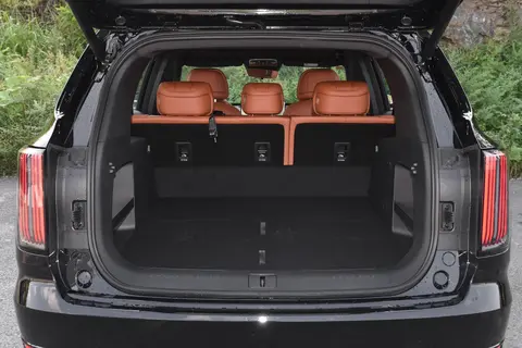 动力上,山海L7 PLUS搭载了鲲鹏超能混动C-DM系统,由一台热效率达44.5%的第五代1.5TGDI混动专用发动机与双电机组成,系统综合功率265kW,综合扭矩530N·m,官方宣称其百公里加速成绩为7秒级,这样的动力水平对于家庭用车来说是相当充裕的。电池方面提供两种容量选择:18.67千瓦时和32.66千瓦时电池组,对应的CLTC纯电续航里程分别为121公里和220公里。其中220公里的超长纯电续航对于大多数城市的日常通勤而言,基本可以实现“一周一充”,有效降低日常使用成本。而其满油满电状态下的综合续航里程可达1700公里,这极大地缓解了长途旅行时的里程焦虑,减少了频繁补能的麻烦。馈电油耗为5.25L/100km(WLTC工况),并且只需加注92号汽油,有助于控制长途出行成本。补能方面,长续航车型支持75千瓦直流快充,约20分钟即可将电量从30%充至80%,利用旅途中的碎片化时间快速恢复电量。此外,全系支持6.6千瓦对外放电功能,这是一个能显著提升户外活动体验的配置,可以同时驱动电磁炉、咖啡机等露营装备,让露营或自驾游变得更加惬意。