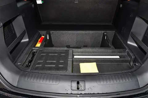 对家庭用户来说,空间是很重要的一点,捷途山海 L7PLUS 在这方面下了不少功夫,也是它的一个优势。车身尺寸上,长宽高分别是 4810mm、1930mm、1705mm,轴距 2820mm,这个尺寸在同级别车型里表现不错,为车内空间打下了好基础。我们体验的 7 座版本,二排座椅调节范围大,坐进二排,腿部大概有一拳空间,头部有三指左右,短途坐着舒服,长途可能会有点挤。第三排空间和座椅更适合应急,长时间坐的话舒适性会差一些,其实这款车更适合用大五座的状态。空间灵活性比不少同级车型好,三排座椅都能电动调节,后备箱里还有第三排座椅的调节按键,不用来回跑。进出第三排也方便,按一下二排座椅靠背上的电动按键就行,不用手动搬。更实用的是座椅放平功能,三排座椅都能放平,前排靠背往后倒,二、三排往前放平,车内就能形成一张纯平的大床,露营休息或者装大件东西都好用。还能根据需求组合空间,比如放倒二排和三排装行李,或者只放倒三排坐五个人,能满足不同场景的需求。座椅舒适性也不错,用了 12 层云朵舒享结构,发泡层厚度 20mm,坐上去软和,支撑性也够。前排座椅有加热、通风、按摩和记忆功能,冬天不冷、夏天不闷,长途开车能缓解疲劳。二排也有加热功能,对老人和孩子很友好。前排座椅后面有二排小桌板,能承重 30kg,还有专属凹槽,放平板电脑、水杯都稳,孩子在后排写作业、看动画片也方便。后备箱扩展后空间大,家庭运输、装露营装备都能满足,日常用和旅行储物都没问题。