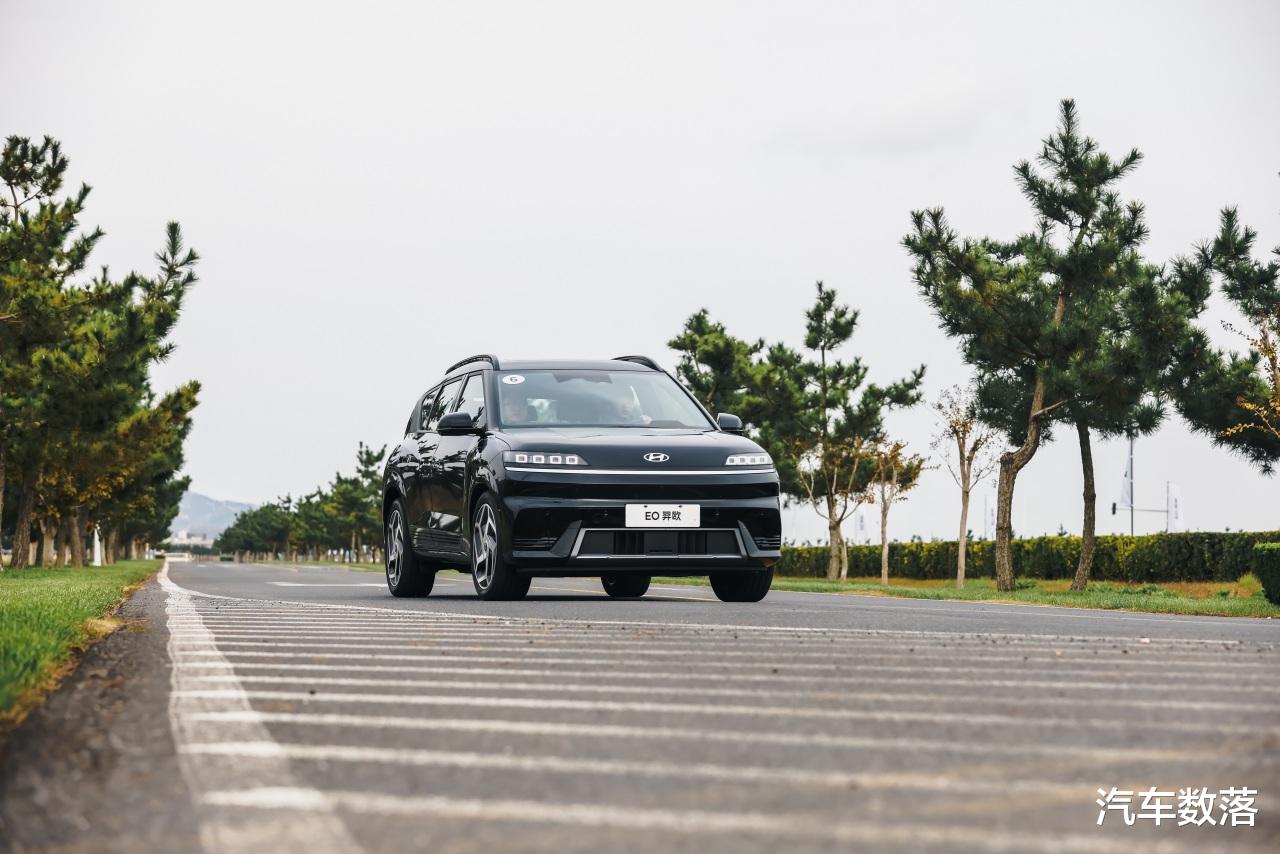 而在高速环道上,EO羿欧时速超190km依然稳如泰山,方向盘不发飘,车身无明显侧倾。这得益于E-GMP平台的低重心设计与刚性车身结构。