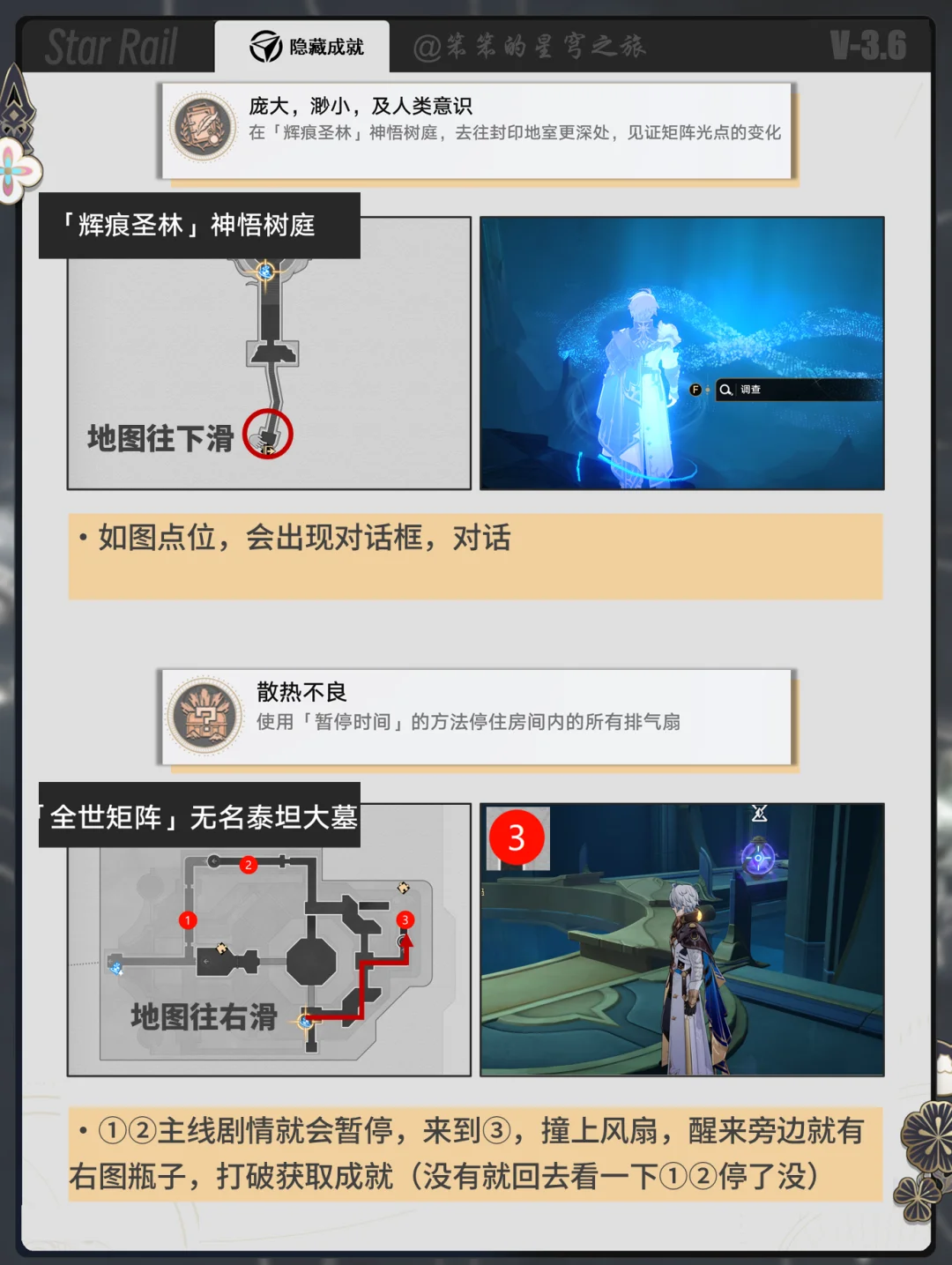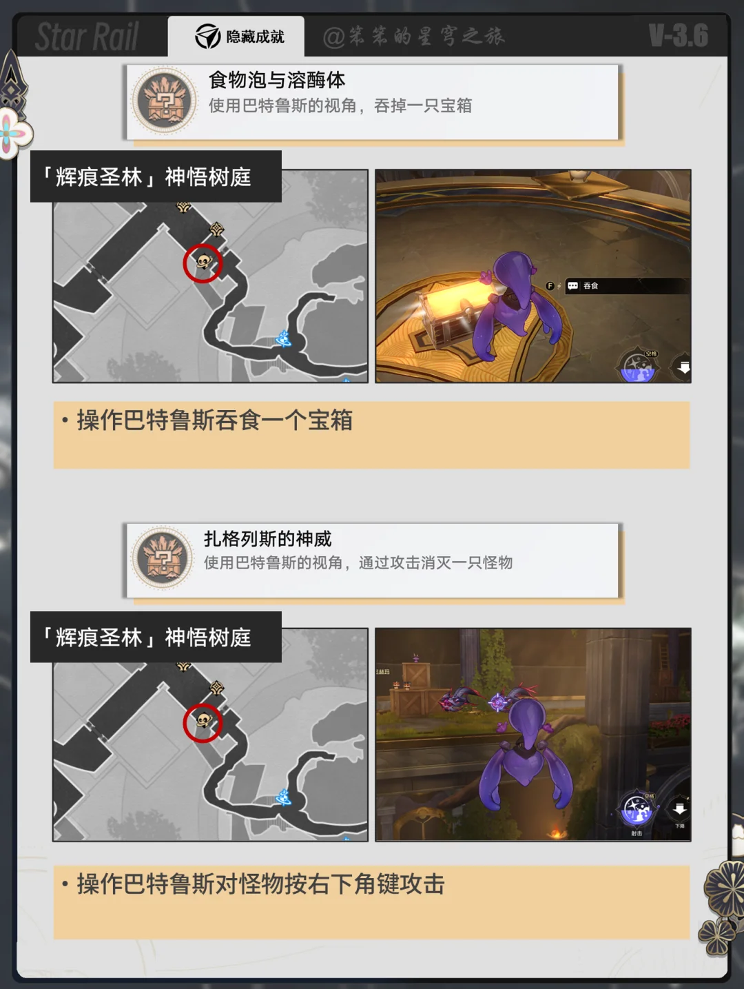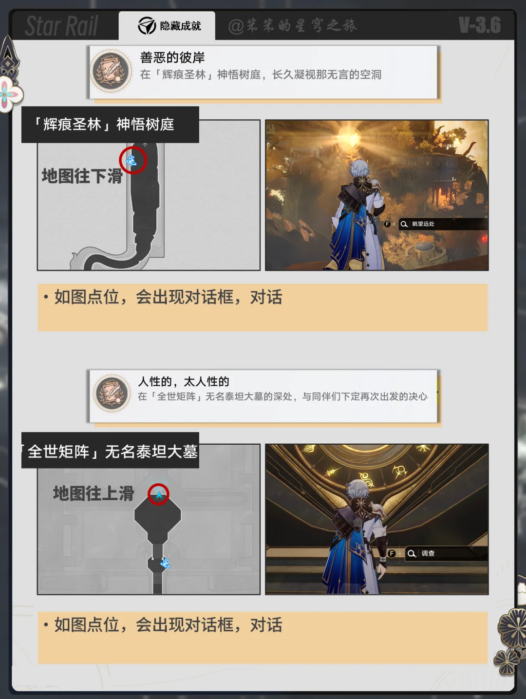 🐱大家好,我是笨笨的铲屎官 今天给大家带来的是3.6成就攻略 这里包括了地图成就 地图探索、宝箱有关的全部都在 少了一个贼灵找翻飞之币 这个几页都写不完 不含战斗、主线必拿的成就 有需要的支持一下吧,谢谢大家