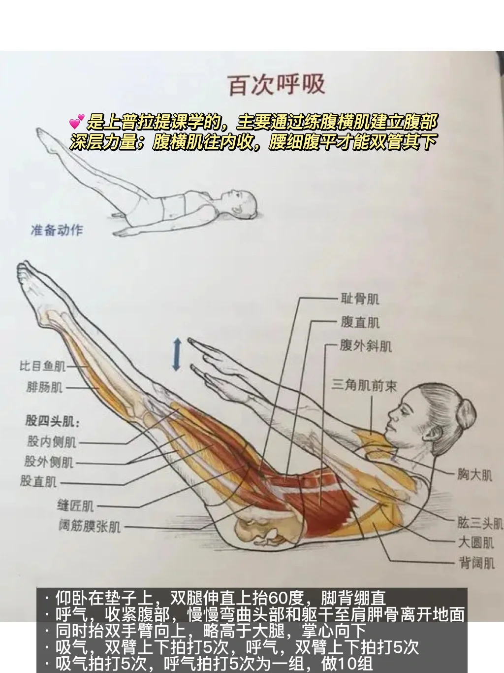 ✅腹式呼吸+普拉提的百次呼吸(是上普拉提的时候老师教我的:通过锻炼腹横肌使肋骨归正同时腰曲内收,进而使腰围减小)