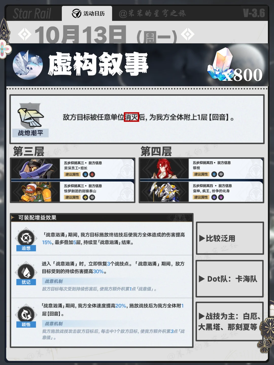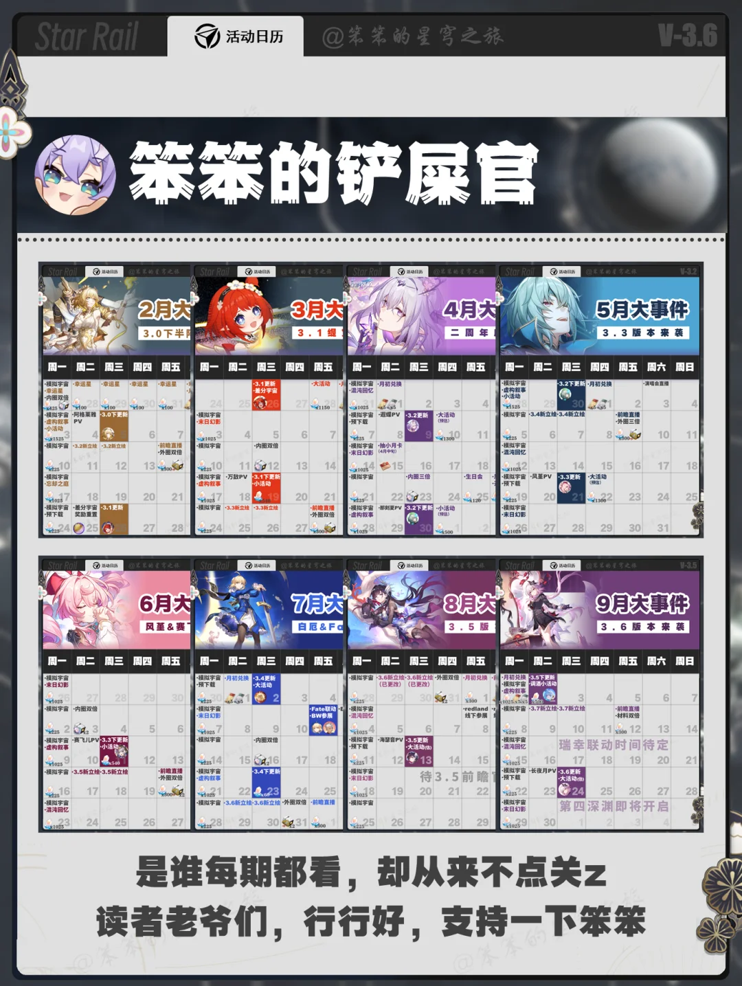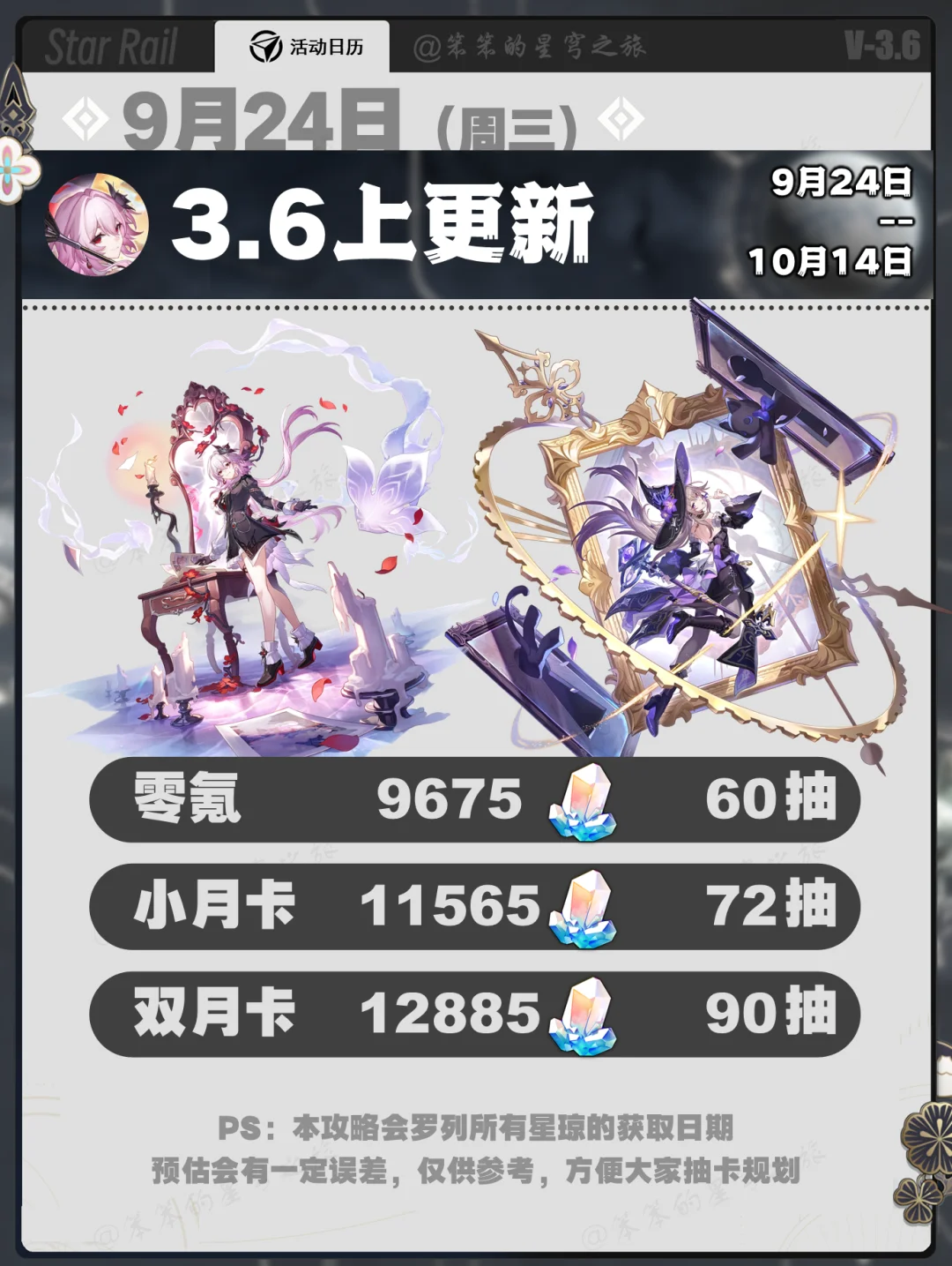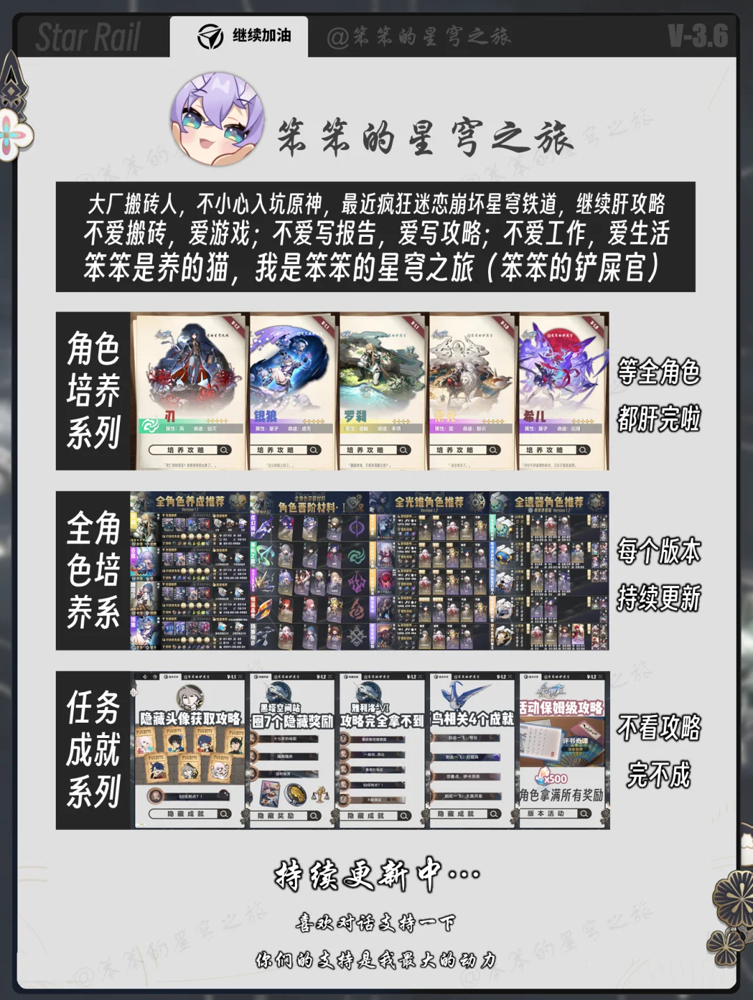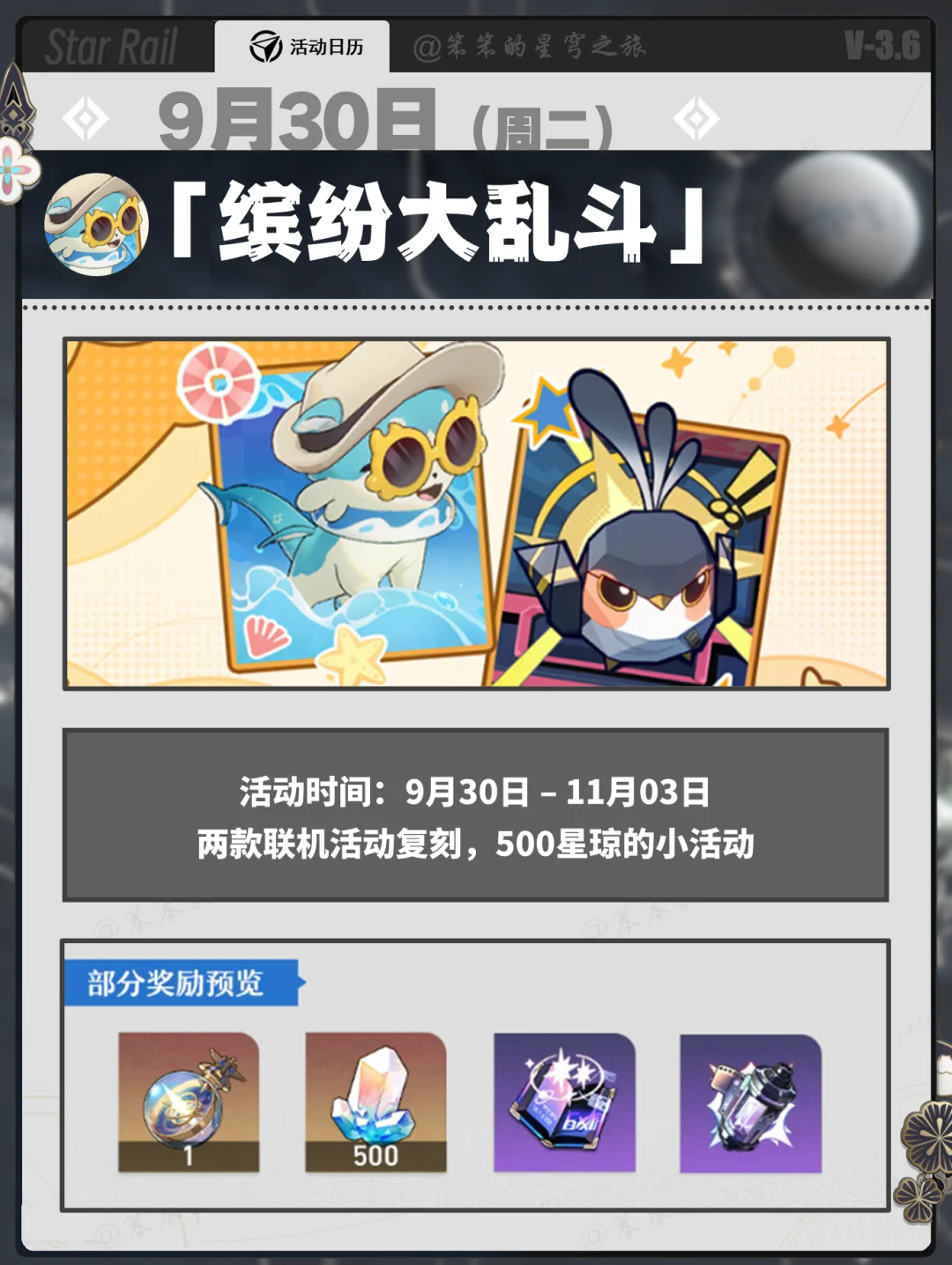 🐱大家好,我是笨笨的铲屎官 今天给大家带来的是崩坏星穹铁道10月活动 重点内容如下: ①3.6版本更新在9月底 ②10月15日 白嫖丹恒SP ③10月21日 3.8角色立绘 ④10月24日 昔涟版本前瞻 10月你比较期待什么内容