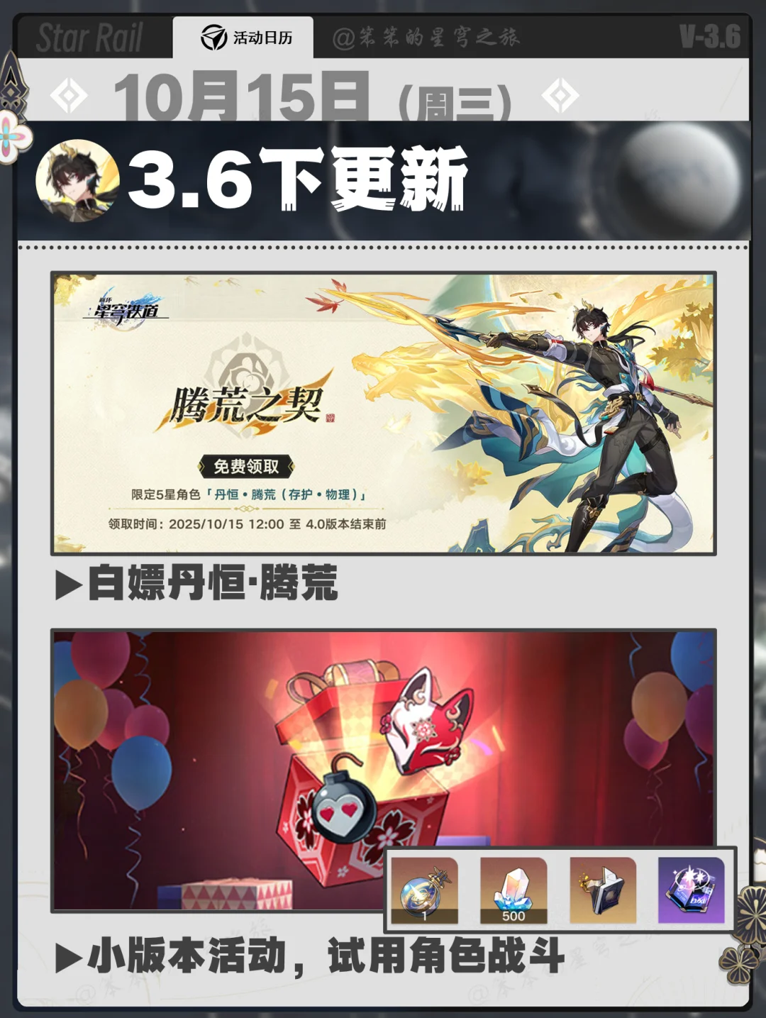 10月大事件,已经在等白嫖的丹恒·腾荒了