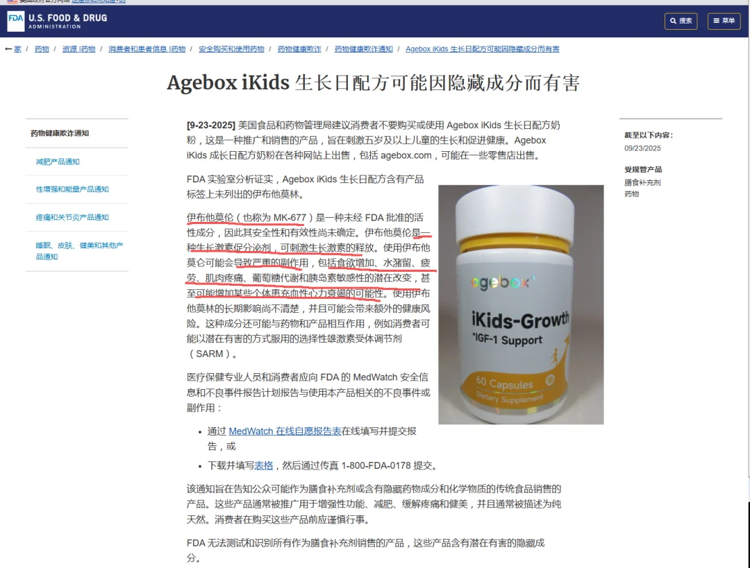 儿童增高剂阿基孚含MK-667被FDA禁售