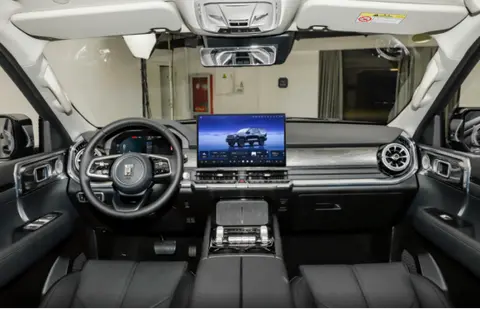 座舱方面的设计,坦克400 Hi4-Z与现款车型保持了一致,只是针对一些细节之处进行了优化升级,其采用了怀挡式的设计,而且在实用性配置上,它也是配备了手机无线充电面板和HUD抬头显示以及车载冰箱等功能,再加上15.6英寸的悬浮式中控屏幕,让其车内的科技质感更加的浓郁,且在中控屏幕内部的智能互联功能上,车辆同样表现不差,满足我们的日常所需显然是没啥问题的。可以说这台坦克400 Hi4-Z给人的感觉可以用四个字来形容,那便是“秀外慧中”。
