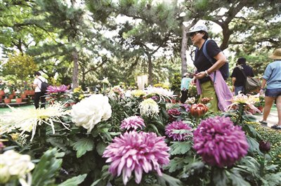 近日,国家植物园第四届菊花展开幕,数万株菊花与月季、桂花以及众多草花织就出一幅秋日盛景。菊花展期间,市民游客走进国家植物园领略自然之美的同时,还可参与丰富多彩的科普活动与文化体验。据悉,独本菊自然花期为11月,经过国家植物园技术人员精准的花期调控,将在国庆佳节提前开放。本报记者周美玉摄影报道