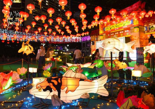 9月12日,以“国风·港味”为主题的中秋彩灯会在香港维多利亚公园亮灯,迎接中秋节和国庆节。新华社陈铎摄