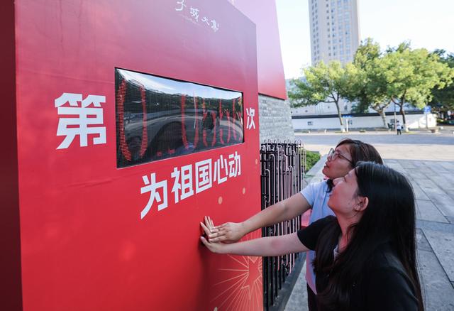 9月25日,浙江省嘉兴市南湖区建设街道的子城城墙边,市民参加我为祖国心动打卡活动。新华社徐昱摄