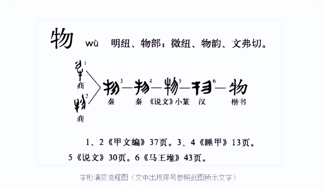 《说文解字》:物,万物也。牛为大物;天地之数,起于牵牛,故从牛。