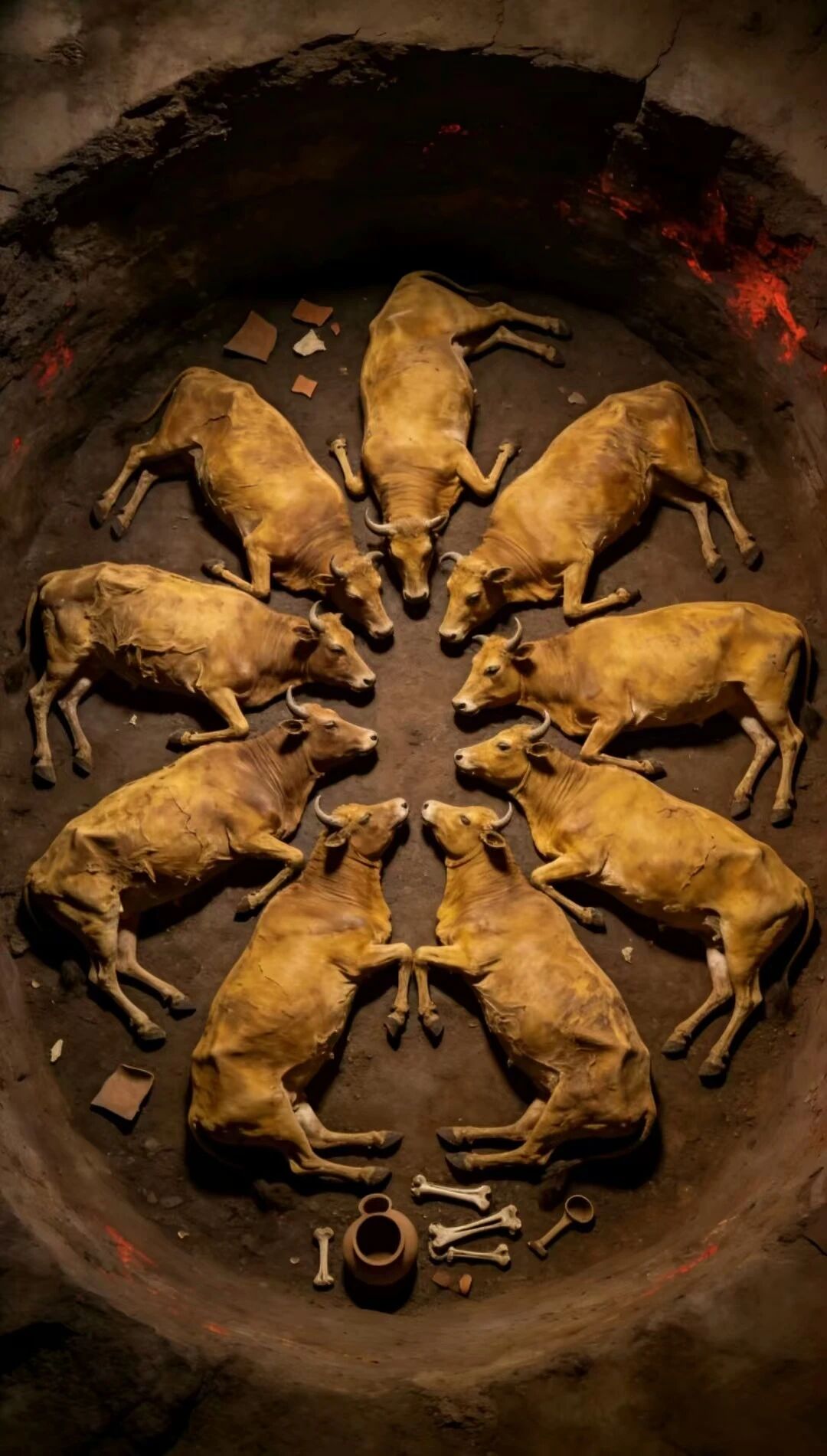 4000年前的、九头牛的、圆形祭祀坑!