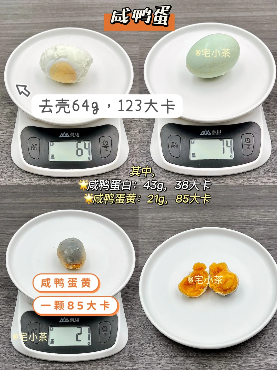 3️⃣咸鸭蛋热量总体可接受,但是钠含量偏高,只建议偶尔吃。