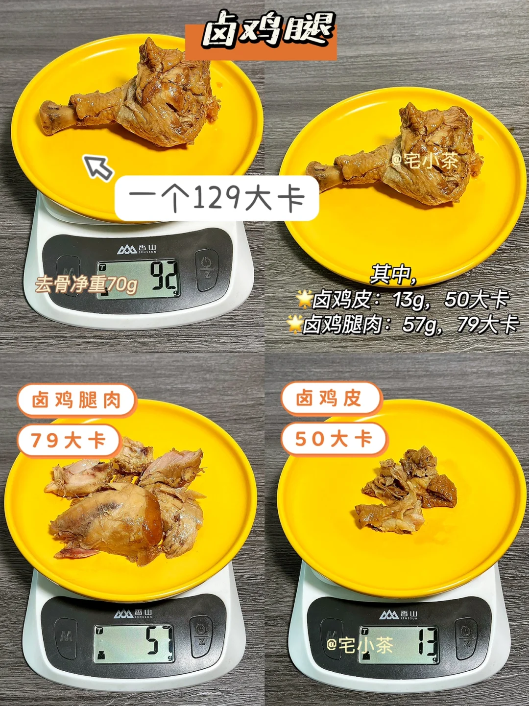 2️⃣卤鸡腿去皮吃热量低1/3~1/2,减脂期ok。