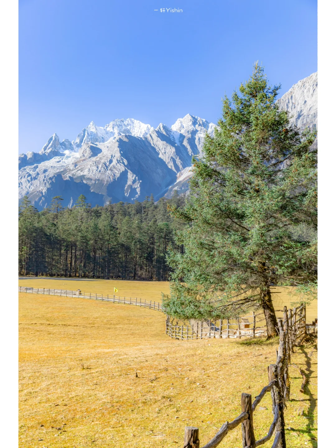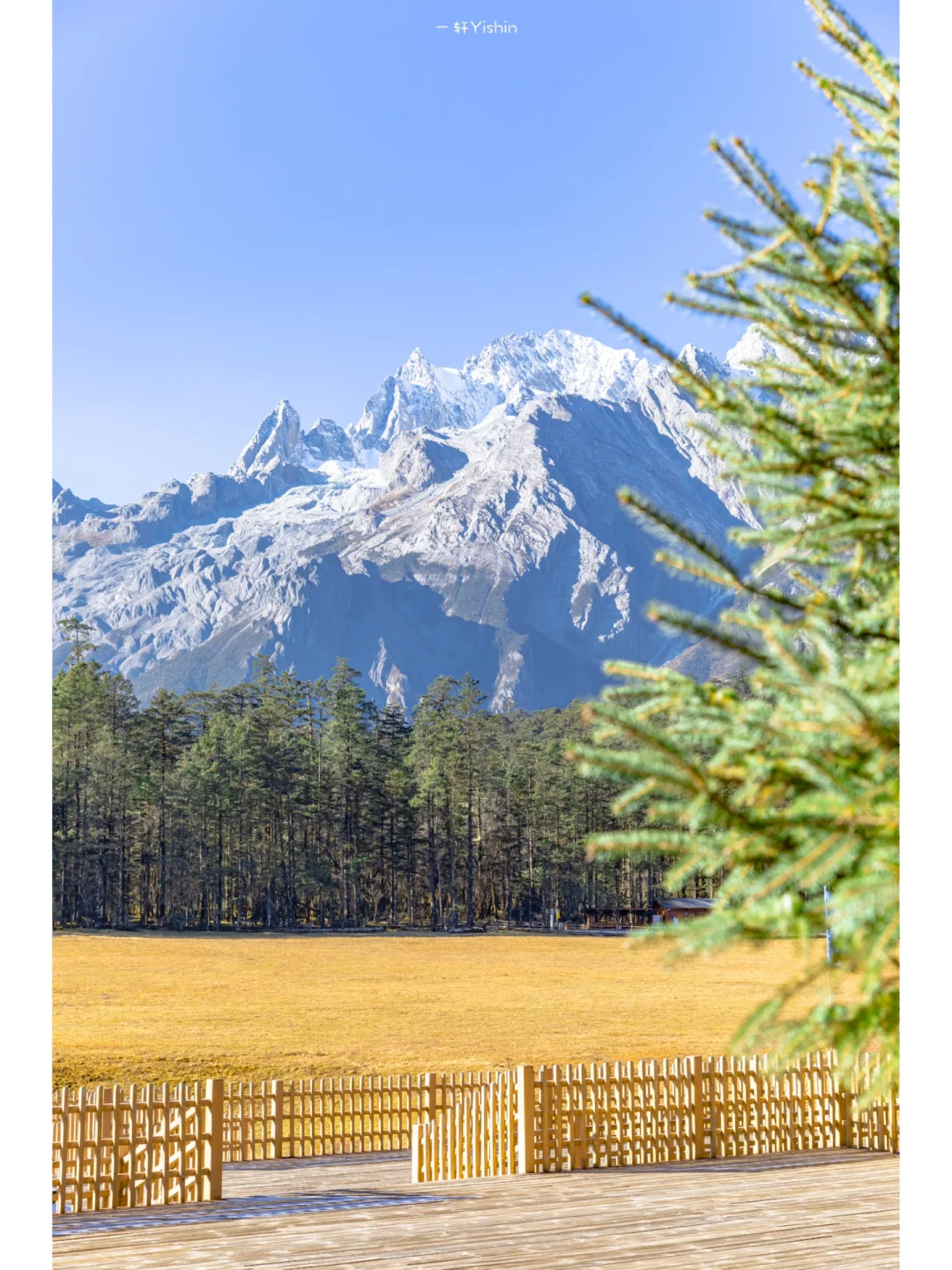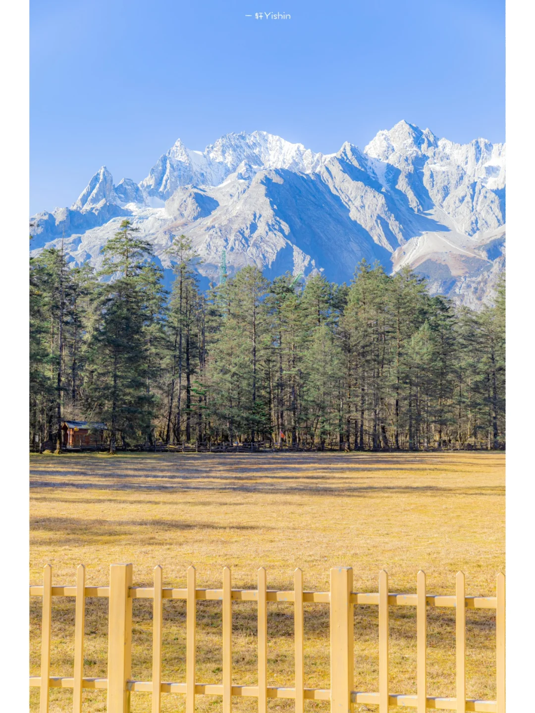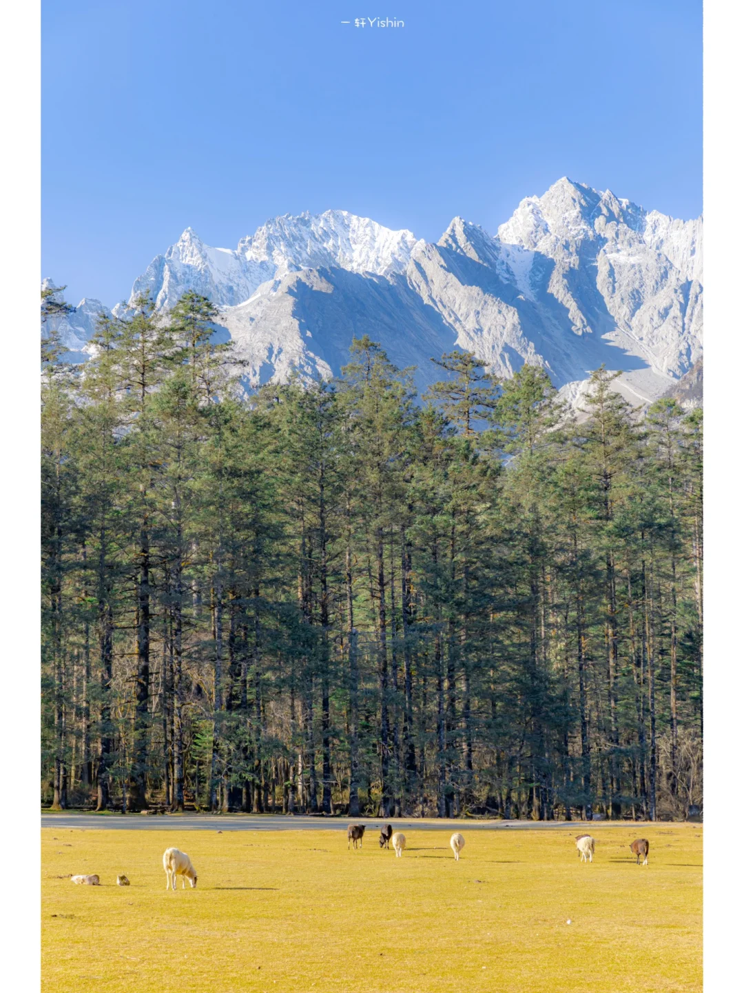 来到丽江,怎能不到玉龙雪山?玉龙雪山上有四个景区,我放弃了海拔4680的冰川公园,选择了海拔三千多米的云杉坪,不会高反,难度系数低,很适合拍照📷! * 🚌交通:自驾!公交101路(忠义市场出发) 🎫门票:100元进山费+云杉坪索道小巴🚐60元 * 坐索道到达云杉坪入口可以选择走路,十分钟就可以到达,在云杉坪你可以看到雪山🏔️,丛林,草地,牛羊群在一起的画面!