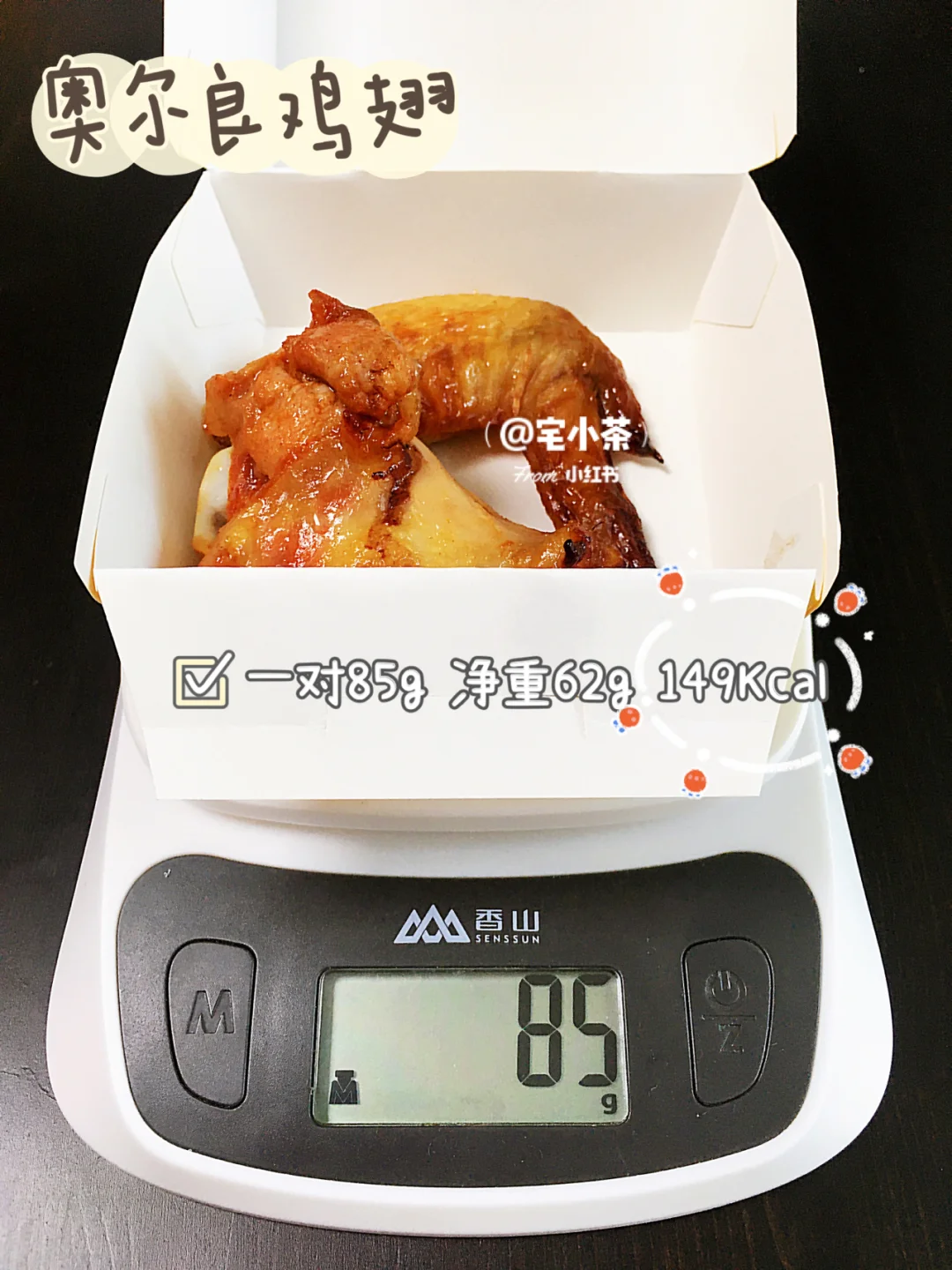 1️⃣麦乐鸡块 一粒19g,53Kcal 一盒102g,286Kcal · 2️⃣奥尔良鸡翅 一对85g,净重62g,149Kcal · 🔆收藏里有: ✅食物热量测评分类🍚 ✅减重减脂必备干货💪 方便大家查找。 · ✔️宅小茶 减脂干货|重量+热量测评 欢迎关注交流!