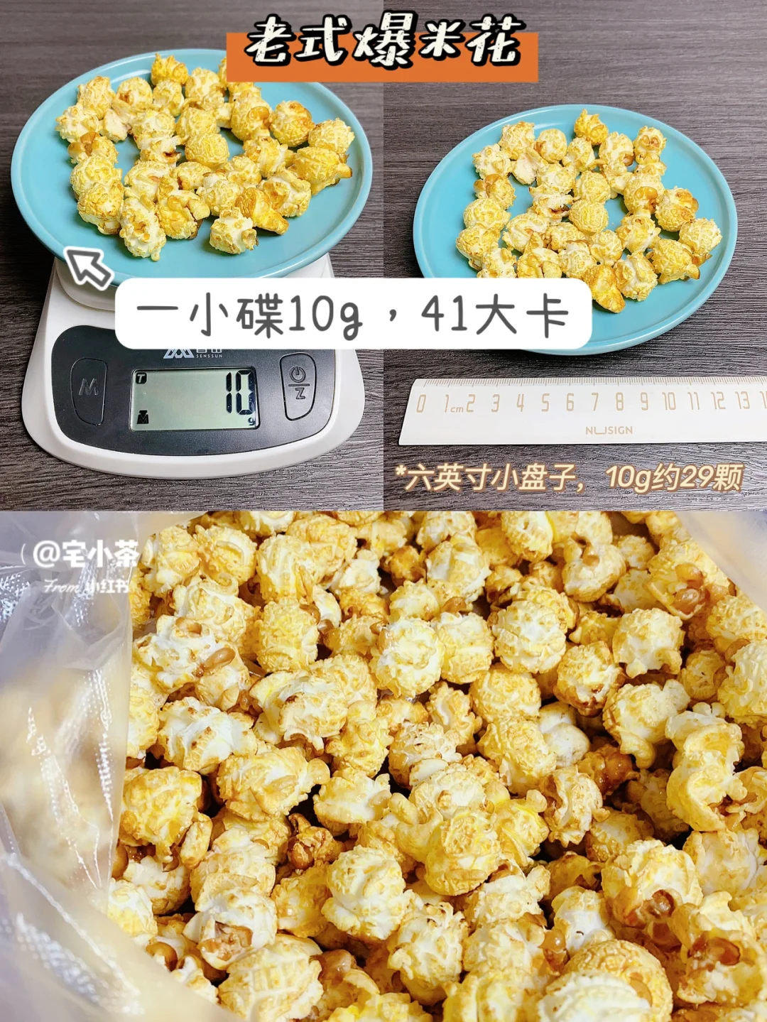 老式爆米花:一小碟净重10g,热量41大卡