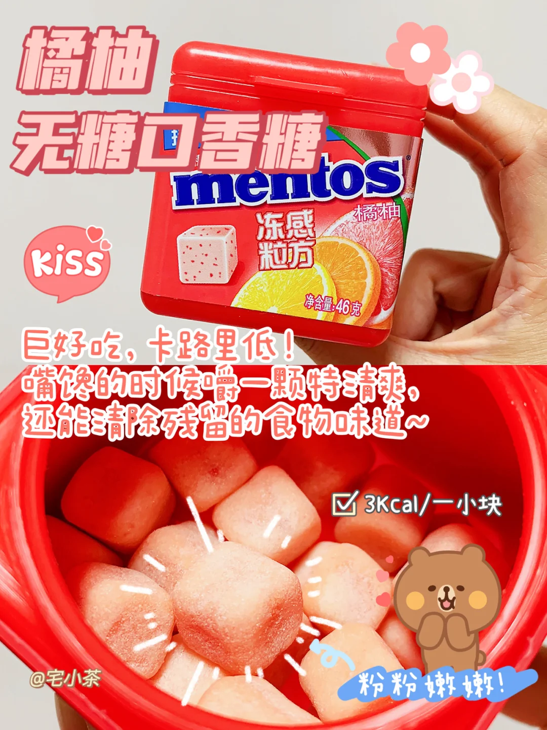 卡路里超低,嘴馋的时候嚼一颗特别清爽,还能清除嘴里残留的食物味道,避免吃了辣的想吃甜的,吃完甜的又想吃酸的~聚餐后吃一颗特别合适!
