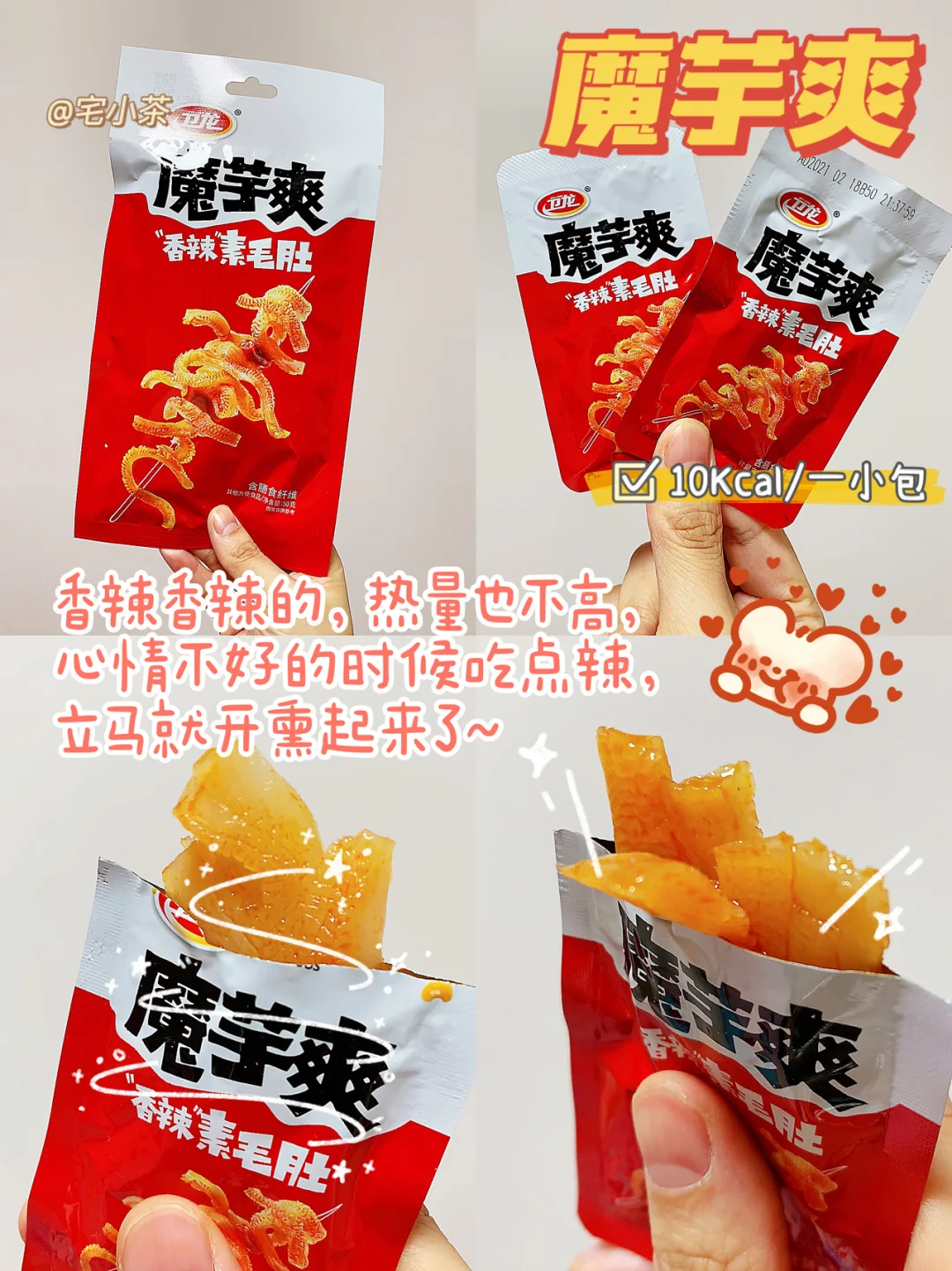 卫龙家的魔芋爽真是一绝!香辣香辣的,热量也不高,心情不好的时候吃点辣,立马就开熏起来了~