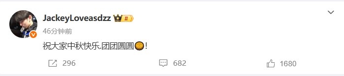 JackeyLove更新动态:祝大家中秋快乐 团团圆圆