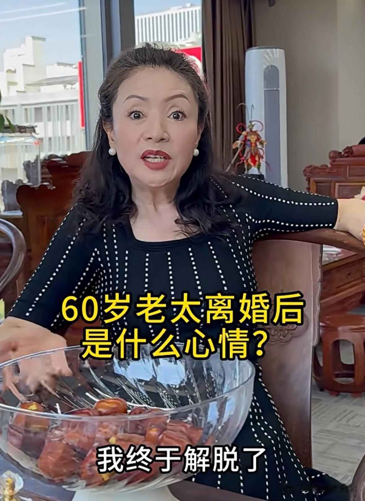 60岁才离婚,而且开心的不得了,想想女人真不容易,一辈子为家庭,为了孩子,受苦受累,到60岁才能按照自己的想法去生活,这也需要很大的勇气。 女子已经60岁了,女儿问她,你离婚后悔么?她说“我不后悔,现在的我特别开心,不用伺候他,不用看他的脸色,不用承受他的冷暴力,不用被一个不值得的人去影响我的心情,我现在美的不得了”。 很多人都没有这样的勇气,离婚真的需要勇气,也需要自己有能力,大多数女人离不开男人就是没有养活自己的能力,离开男人过的会更不好,也就得忍受男人带来的各种伤害。 实际男人没啥真感情的,大多数男人自卑又自大,不管是自卑还是自大,他们在家里都想有绝对的地位和话语权。越没有本事的男人,越怕被家人瞧不起。 我不支持女人到60岁才离婚,为了孩子,委屈一辈子,不值得。缺钱自己出去赚,孩子自己一样可以带好,自己幸福了,家人才会快乐。 离婚就是解脱,全身心的爱自己,不被别人影响生活质量,不被坏情绪影响心情,有个好身体,60岁也一样可以婚的风生水起,有声有色。