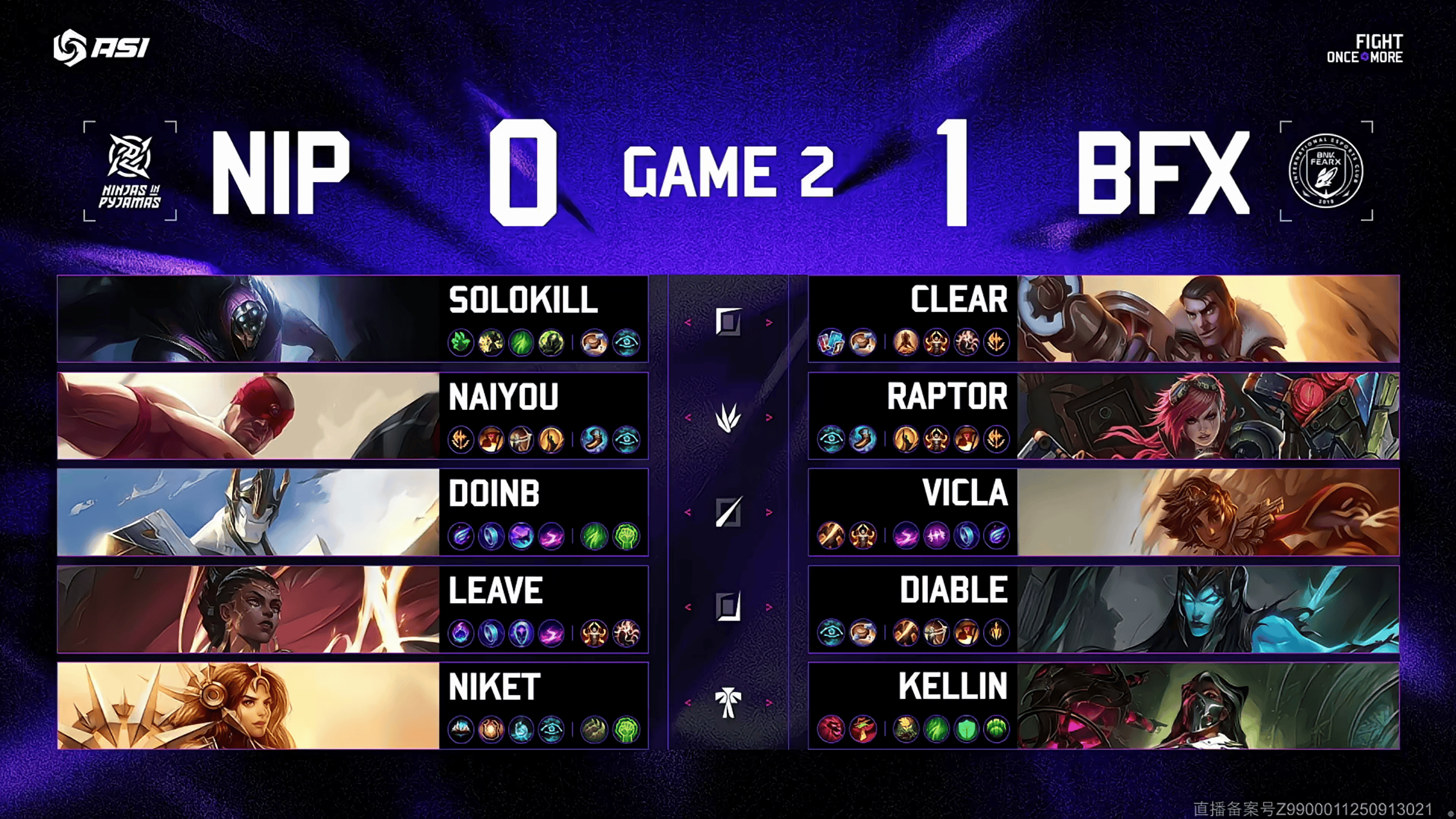 虎扑10月07日讯Game2:蓝色方NIP,红色方BFX