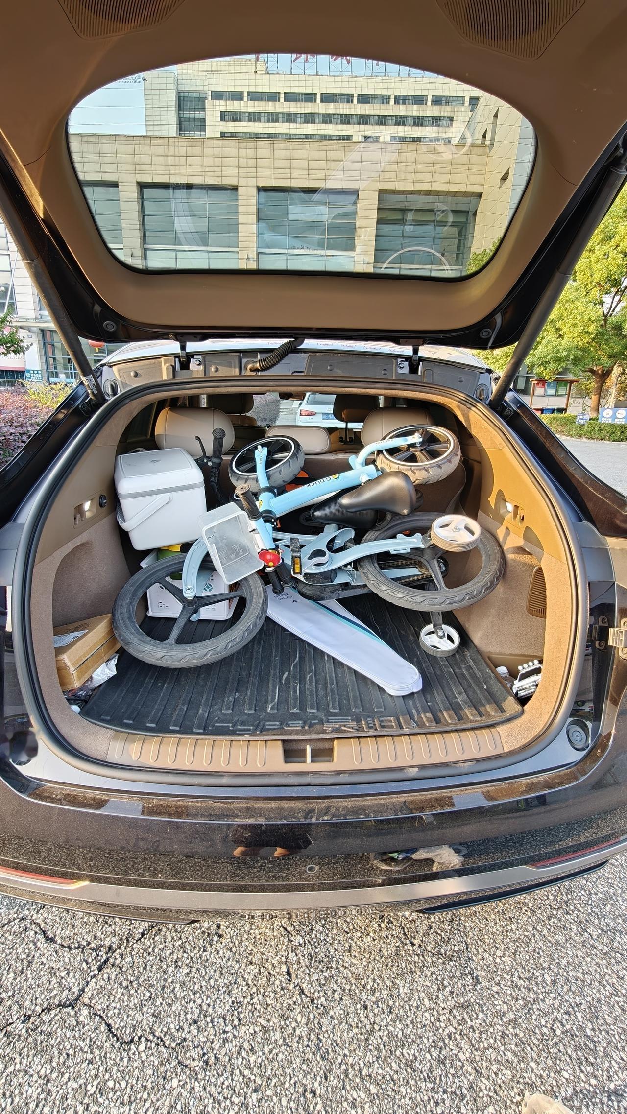 这个十一七天,驾驶着昊铂HT既有短程的购物行,也有跨市的长途自驾游。跑了447.1公里,续航掉了590公里,相当于打了7.6折,这可是全程音响,空调的结果,而且后备厢贼能装,小朋友自行车,推车,平衡车轻松装下四辆,实在令人满意,最主要的是,一分钱都没花,这个羊毛薅的太爽了。【来自懂车帝车友圈】