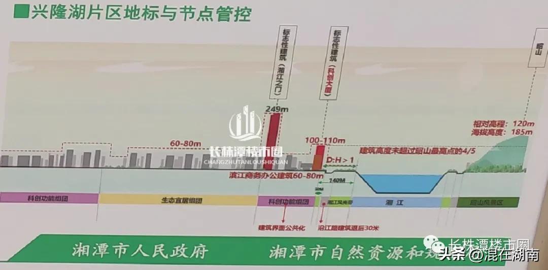 根据湘潭市国土空间总体规划(2021-2035年),兴隆湖板块被定义为“千里湘江第一湾”、“江湾客厅、湘江之门”,未来这里将打造成长株潭融城发展“科创+服务”先行试验区。
