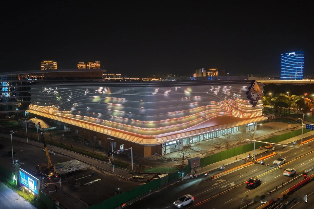 近日,扬州文昌西路上的山姆外立面亮化工程正式启用,独特的设计风格与周边夜景融为一