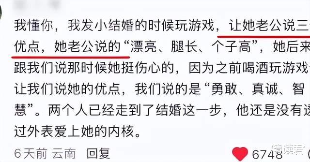 有个女孩结婚的时候,朋友起哄让老公说出她的三个优点,老公脱口而出:“漂亮、腿长、个子高。”