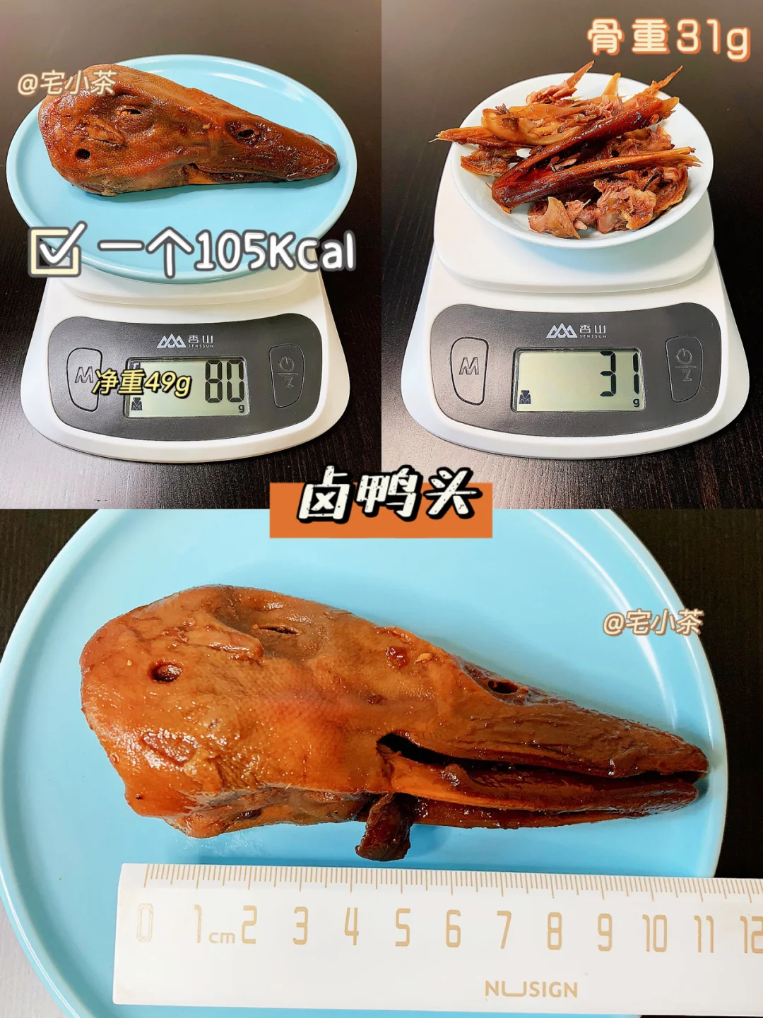 卤鸭头(个)净重49g 热量105Kcal