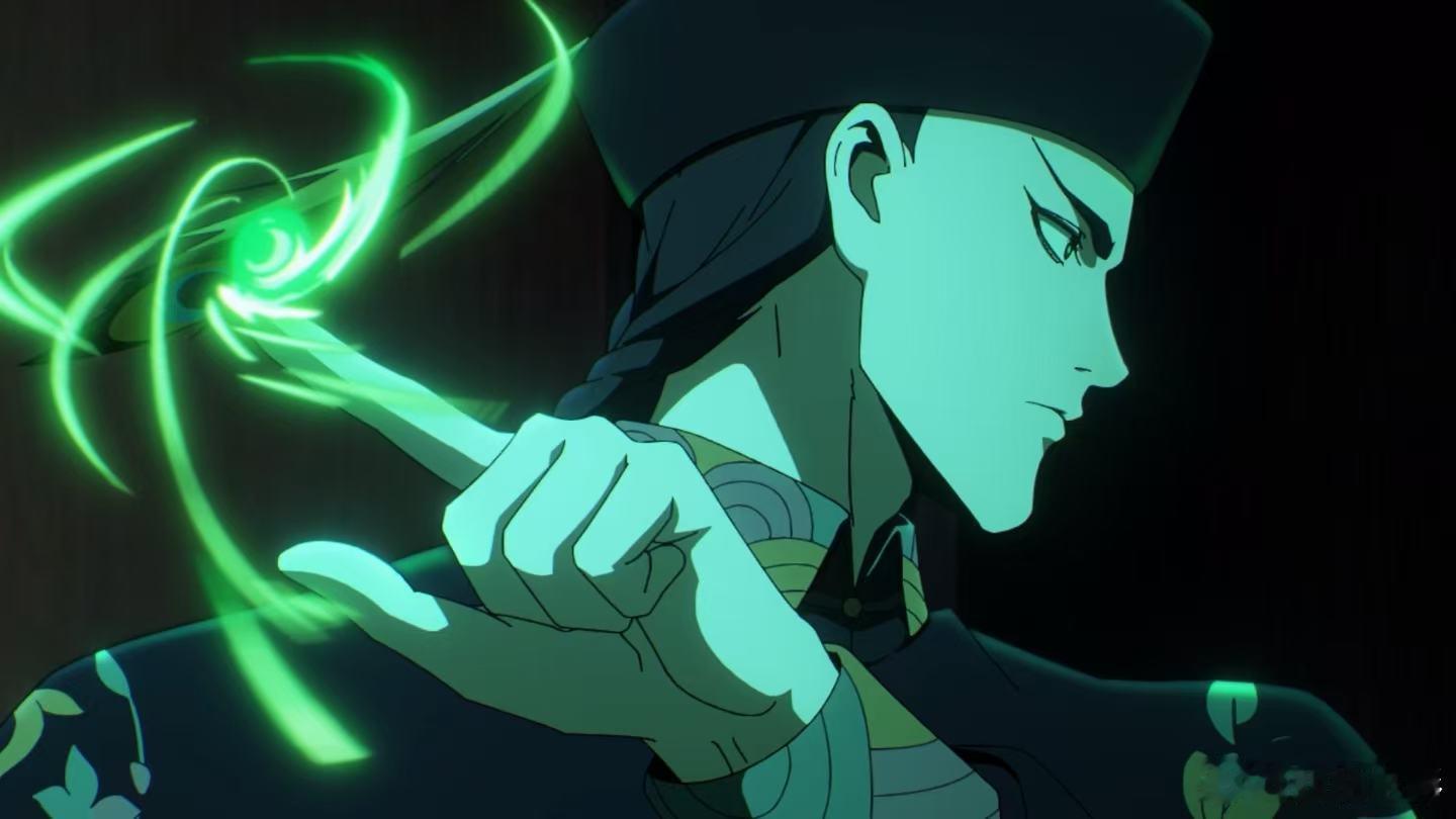 终于等到谷围撑伞名场面 中式美学的精髓全在这帧里了!倾斜构图藏着宿命感,红与绿的暗调里,王爷撑伞的身影既是守护也是羁绊,动画太懂原著了。
