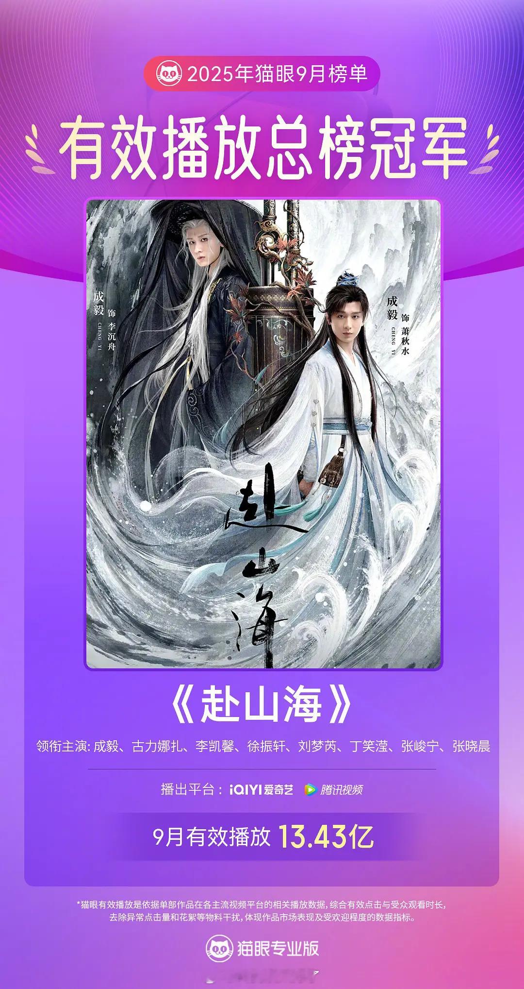 成毅《赴山海》9月剧集双榜冠军,9月集均已3000w+