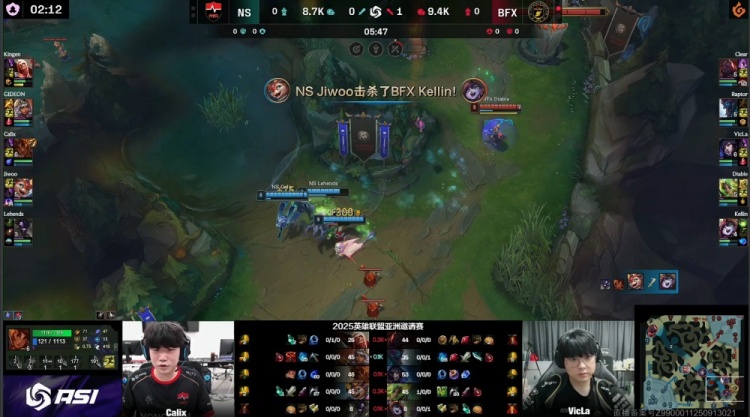 [25:15]BFX中路推进,Vicla妖狐进场轻松三杀,杀人书来到25层,BFX打出0换4,经济领先1w3k,正面一波推平NS基地,晋级决赛!