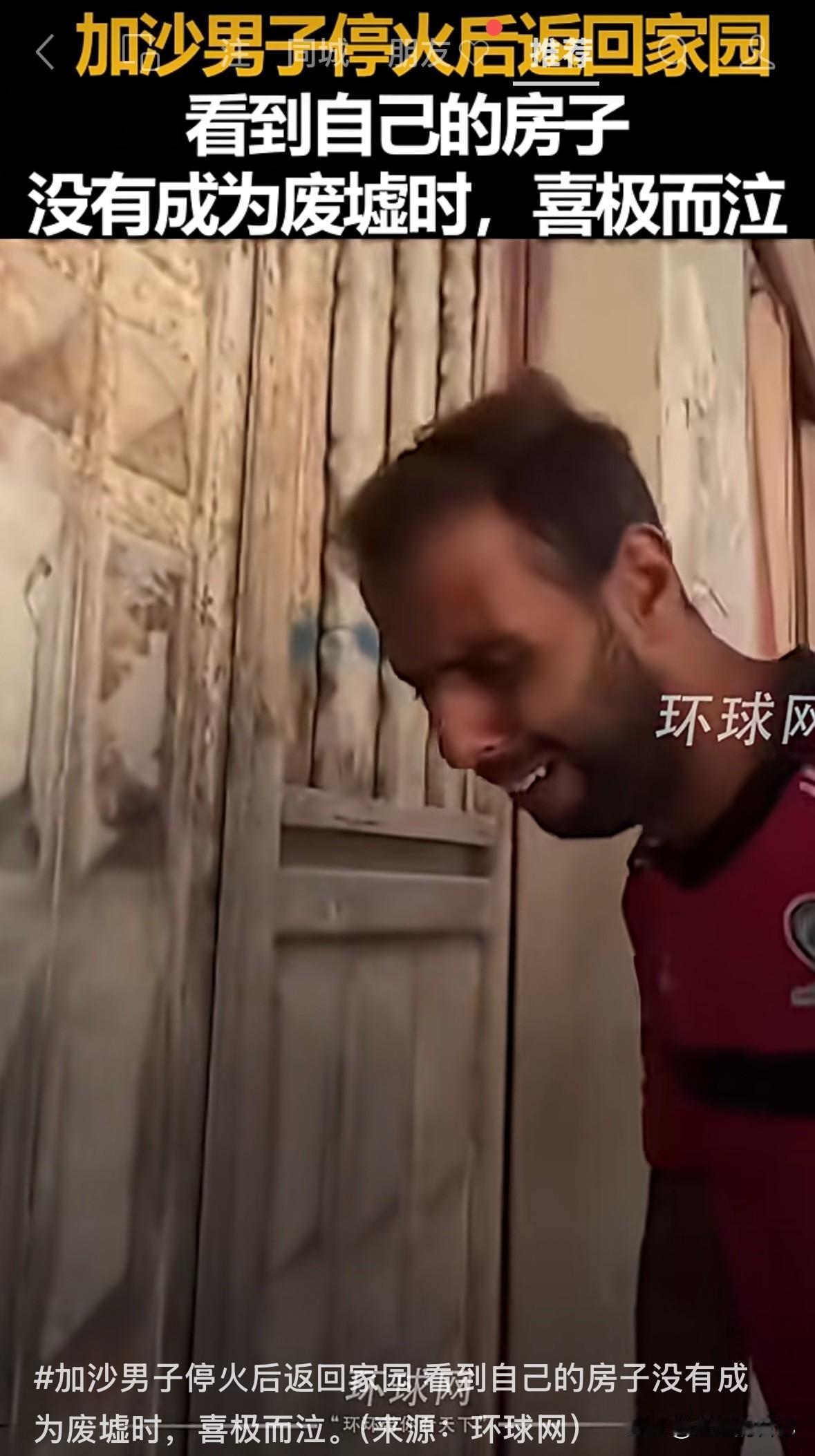 加沙一男子,在战火停止后返回家园,没想到,自己的家居然没变成废墟瓦砾,激动的趴在门上痛哭失声,最后跪在门前,亲吻家门口的土地。 这个世界上,还有很多人过的非常苦,他们能活着,已经是最大的幸运。加沙没有一个家庭是完整的,都有亲戚,或者家人在这次冲突中受伤或者失去生命。 和平来之不易,希望大家能珍惜我们现在的好生活。