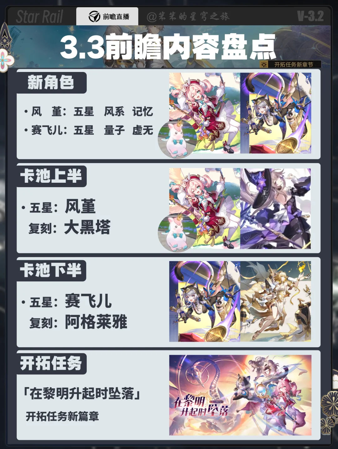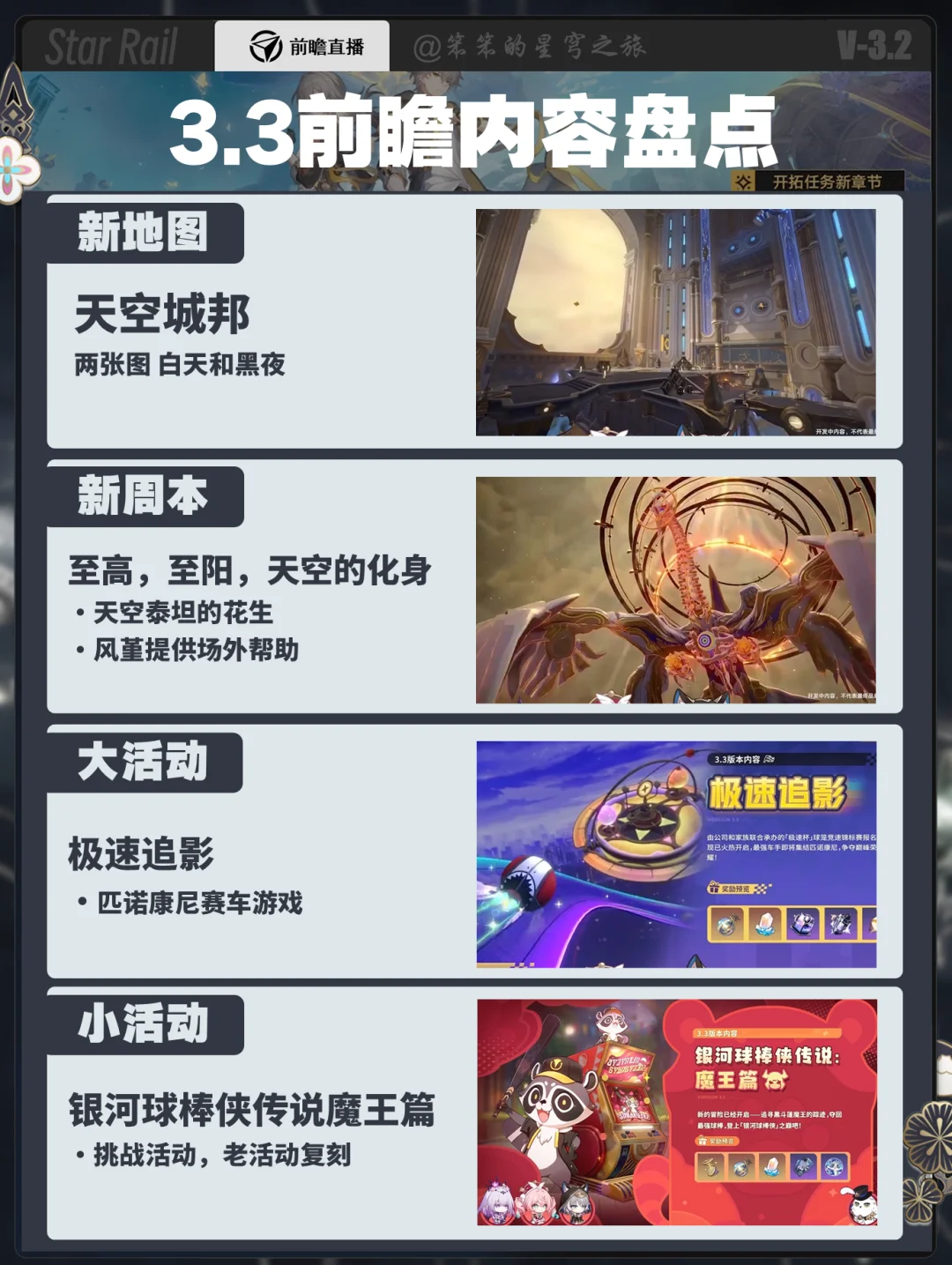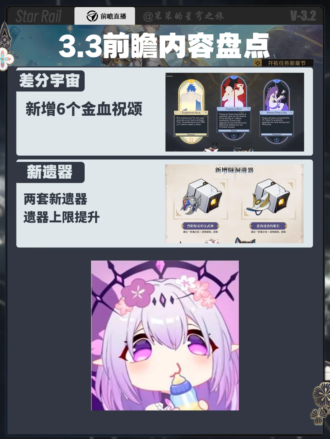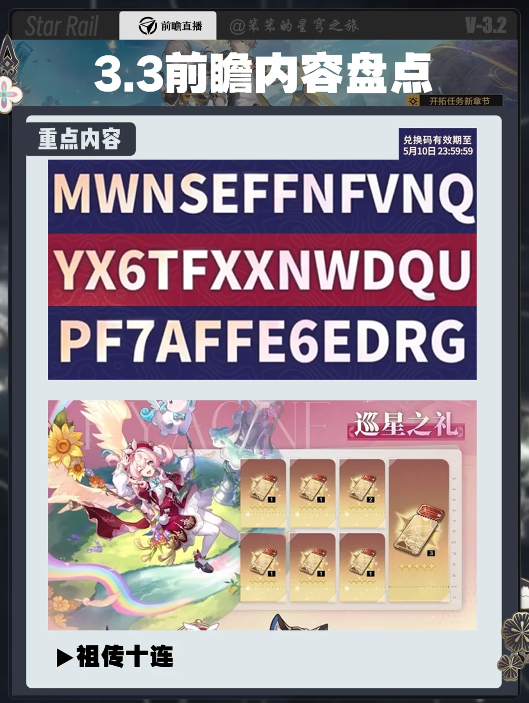 崩铁3.3前瞻直播汇总,300星琼速速拿走
