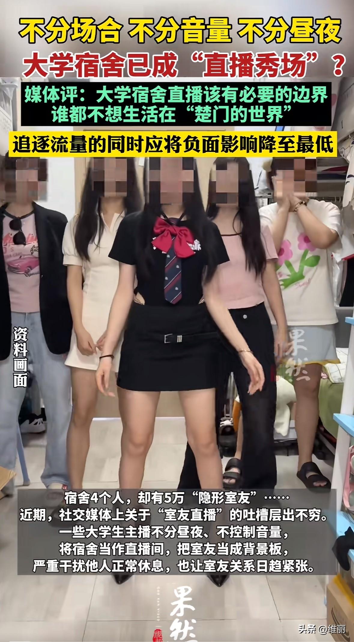 开学季以来,大学宿舍直播乱象引发不少吐槽。有的学生不分昼夜直播,音量外放吵得室友没法休息,舍友关系闹得很僵。更过分的是镜头没边界,室友换衣服、床铺私物随意被拍进直播,隐私全泄露了。还有人为博流量搞擦边,让宿舍成了秀场。 这事儿根源挺多,学生想被认可、羡慕主播赚钱,MCN机构也在背后推波助澜。关键是多数高校没明确规定,直播成了管理灰色地带。 其实直播没问题,但得有规矩。个人自由不能牺牲别人权益,开播前得跟室友沟通好,镜头绝对不能拍隐私。学校该赶紧补上台规,平台也别再给这类内容流量。毕竟上大学首要任务是学习,为直播丢了学业、伤了关系太不值。