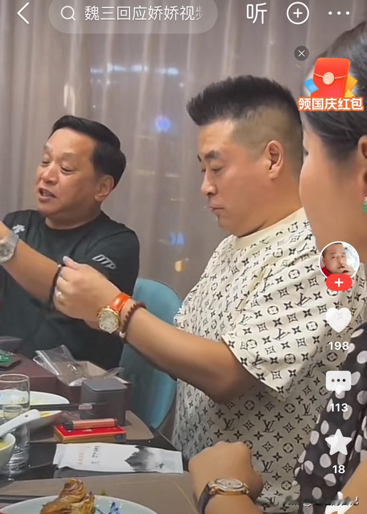 魏三和娇娇一起吃饭视频曝光…… 这边网上互相对骂,那边私下一起吃饭,其乐融融,这是演戏演上瘾了,为了流量,什么都敢编。 之间两个人有说有笑,几个人在那里研究着翡翠牌子,这是准备带货卖翡翠,期间娇娇乐的花枝乱颤,两个人没有一点矛盾,而且关系还是非常好的。 这就让大家纳闷了,不是娇娇不认这个师傅了么?说魏三半夜约她去喝酒,没安好心,又说魏三收了它翡翠牌子不办事,让魏三把牌子拿回来。 魏三回复,牌子他送人了,扔厕所了,反正就是不还了。娇娇就一直在网上吵着让魏三还,把网友看的直劝架,最后发现,人家私下根本没矛盾。 真搞不懂她们这是要干啥,没矛盾为什么弄的跟仇人一样呢?