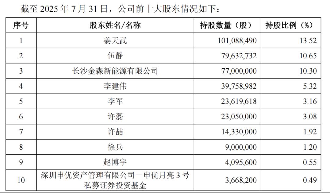 公告显示,截至2025年7月31日,梦洁股份前三大股东姜天武、伍静、长沙金森分别持股上市公司13.52%、10.65%、10.30%股份,股权结构相对分散。