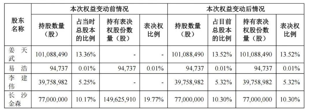 梦洁股份表示,该次权益变动事项将会导致公司控制权发生变更,长沙金森不再是公司拥有表决权的第一大股东。姜天武成为公司拥有表决权的第一大股东,姜天武与其一致行动人合计持有梦洁股份13.53%股份。