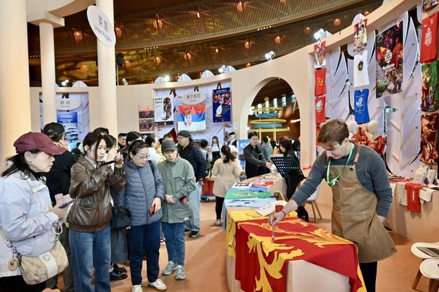非遗周的互动区更是文明交融的现场:巴西卡波耶拉传承人邀观众共舞,安哥拉艺人演奏传统乐器并现场教观众敲击节奏,格鲁吉亚传统印染体验区始终排着长队,匈牙利布索面具展台前观众争相佩戴各式面具拍照留念。一位埃及参展代表赞叹:“非遗周非常成功,我们希望再来!”