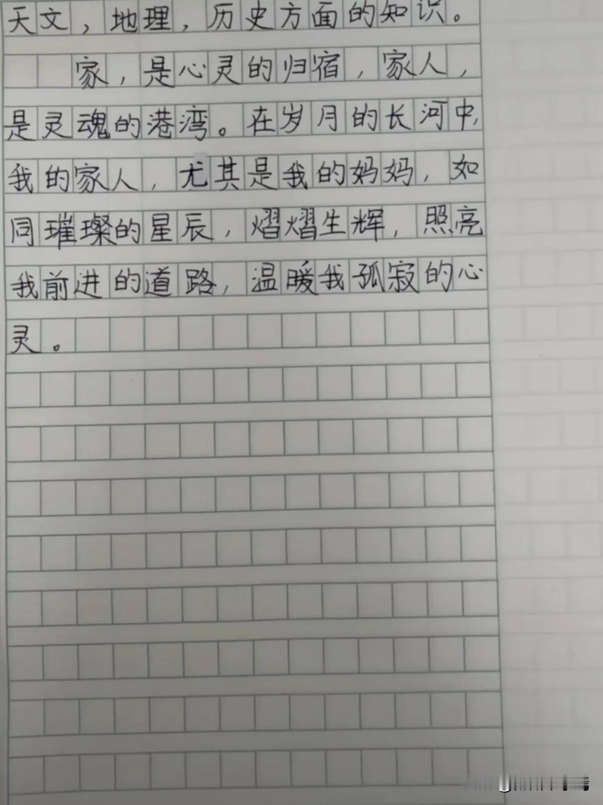 近期,扬州一位妈妈晒出的四年级孩子作文《我的全能妈妈》引发关注。作文中,孩子以稚嫩笔触描绘了妈妈的外貌神态,用“大厨”大厨”“学习老师”“生活导师”等鲜活称谓,记录下厨房忙碌的身影、解题时的耐心指导、露营研学的陪伴时光,质朴文字满含对母亲的敬爱与依赖,成为诠释平凡母爱最动人的注脚。扬州孩子作文里的全能妈妈 读完全文,我想对大家说,家庭是社会的基本细胞,母爱是家庭温情的核心源泉。我们扬州这名孩童笔下的“全能妈妈”,是千万扬州母亲的生动缩影,也是我们扬州市家庭美德建设成效的直观体现。这份藏在饭菜香里、融在陪伴中的母爱蕴含着滋养个体成长、凝聚社会力量的强大能量。 家庭和睦则社会安定,家庭幸福则社会祥和。扬州市正全力推进中国式现代化新实践,我们始终认为,高质量发展既需要产业科创的硬支撑,也离不开家庭文明的软实力。“妈妈”是家庭的守护者,用辛劳让家人安心前行;是价值观的传递者,用言行培育良好家风;是社会活力的滋养者,用奉献为发展注入温情底色。 近年来,扬州仪征持续深化婚俗改革、强化婚姻家庭辅导,通过“幸福讲堂”“特邀颁证”等多种形式弘扬家庭美德,正是要守护好这份藏在千家万户的温情力量。当每一个家庭都充盈着母爱温情与和睦氛围,当每一个孩子都能在爱的滋养下成长,就会汇聚成推动城市高质量发展的磅礴精神力量,让“民生清单”真正转化为群众看得见、摸得着的“幸福账单”。发展的最终目的,是让每个家庭都能享有稳稳的幸福。 一篇几百字的作文,没有华丽辞藻,却因真挚情感直抵人心。或许我们每个人心中,都有这样一位“全能妈妈”。此刻的你,是否也想起了自己母亲的身影?那些藏在日常细节里的爱,那些贯穿成长岁月的陪伴,你曾用怎样的方式表达过感恩?在扬州迈向更高质量发展的路上,我们该如何更好地守护家庭温情、弘扬母爱美德?欢迎大家分享。