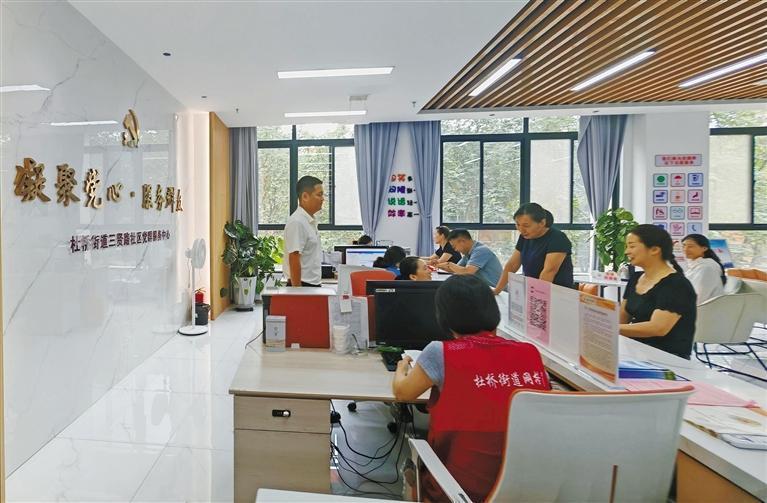 渭南市临渭区杜桥街道三贤路社区党群服务中心工作人员为群众办理相关业务(资料照片)。记者郑斐摄