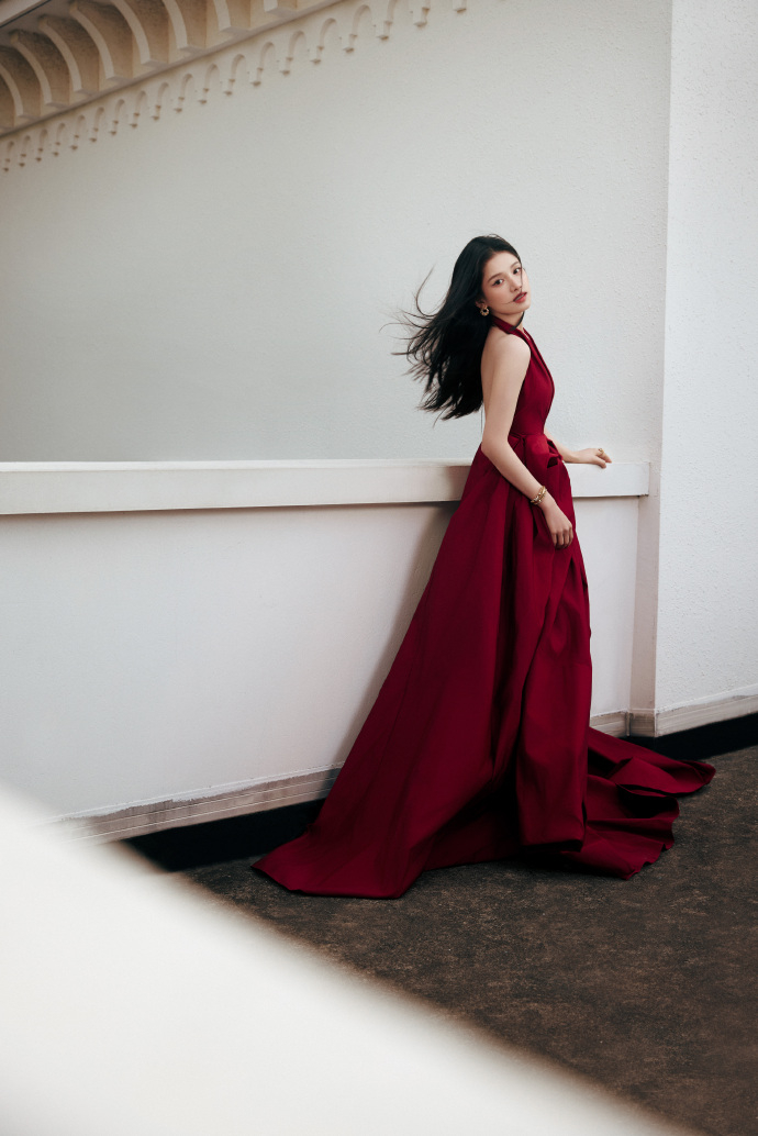 张婧仪酒红长裙张婧仪肆意盛放的烈焰玫瑰