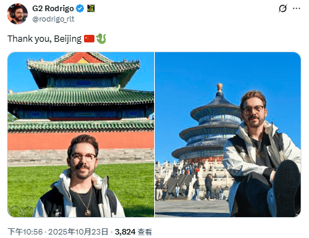 虎扑10月23日讯G2分析师Rodrigo晒在天坛游玩照片:谢谢你,北京!