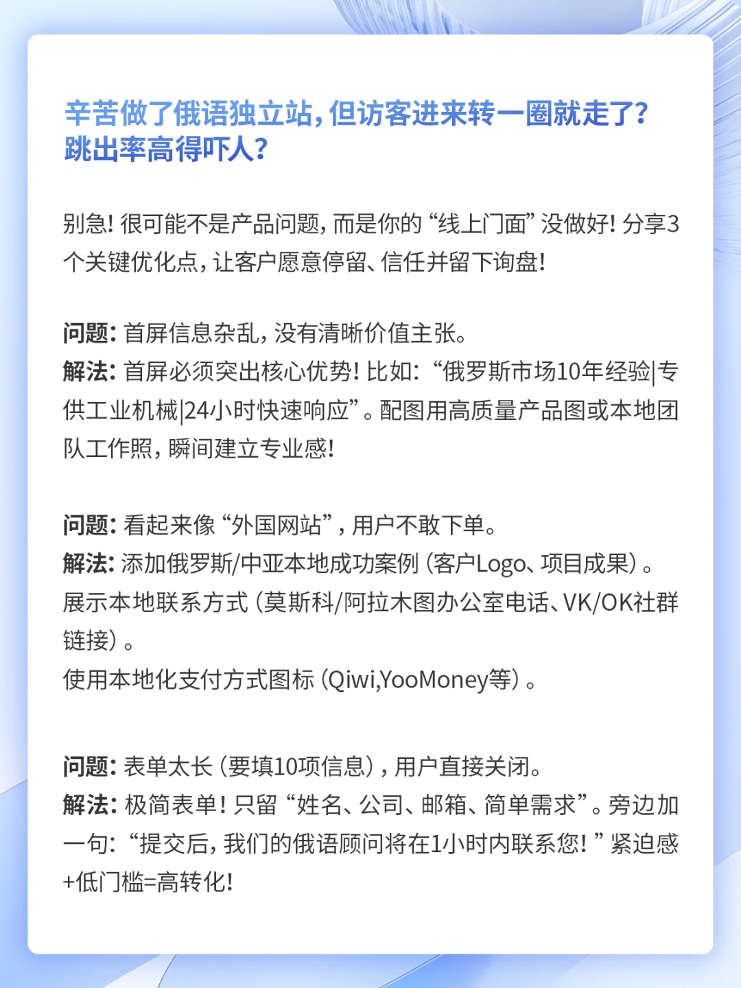 3招让你的俄语独立站粘住客户,询盘翻倍
