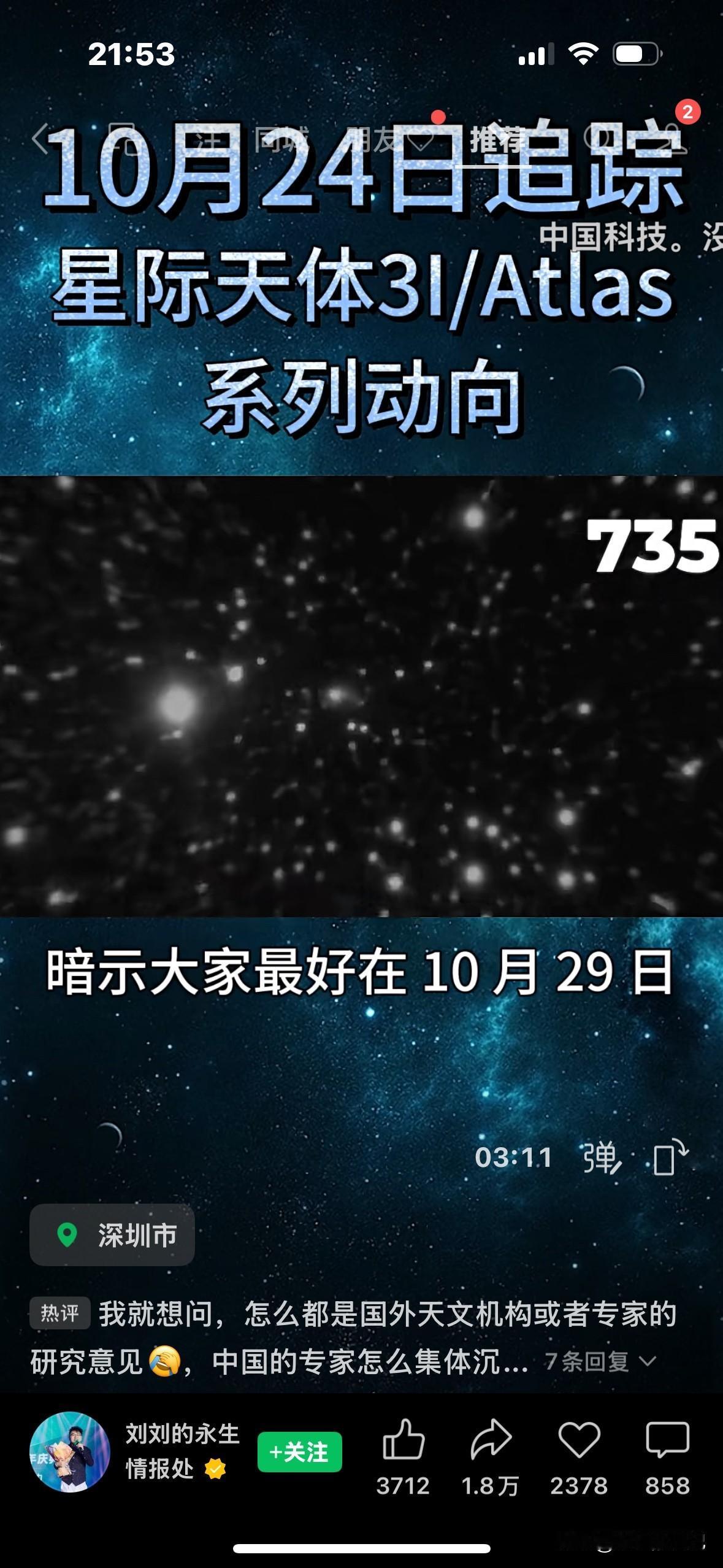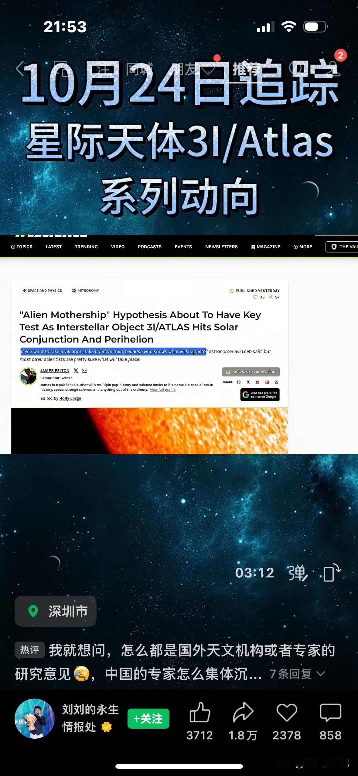 美国一天文学者暗示大家,10月29号之前最好跟家人一起度个假,大家该吃吃,该喝喝,3l/Atlas真的会给我们这样的一次人生体验么?我感觉有些人就是闲的,没事制造恐慌。 不管是不是外星文明,都不可能无端的去制造一些不应该有的行为,如果真是他说的那样,它就不会飞跃几亿光年,而不停歇,如果是这样,别的星体怎么没出现任何问题。 但是,这几天我也在想,如果真有这样一天,你们想跟谁在一起呢? 我想跟他在一起,但是,这个他是他而不是他!