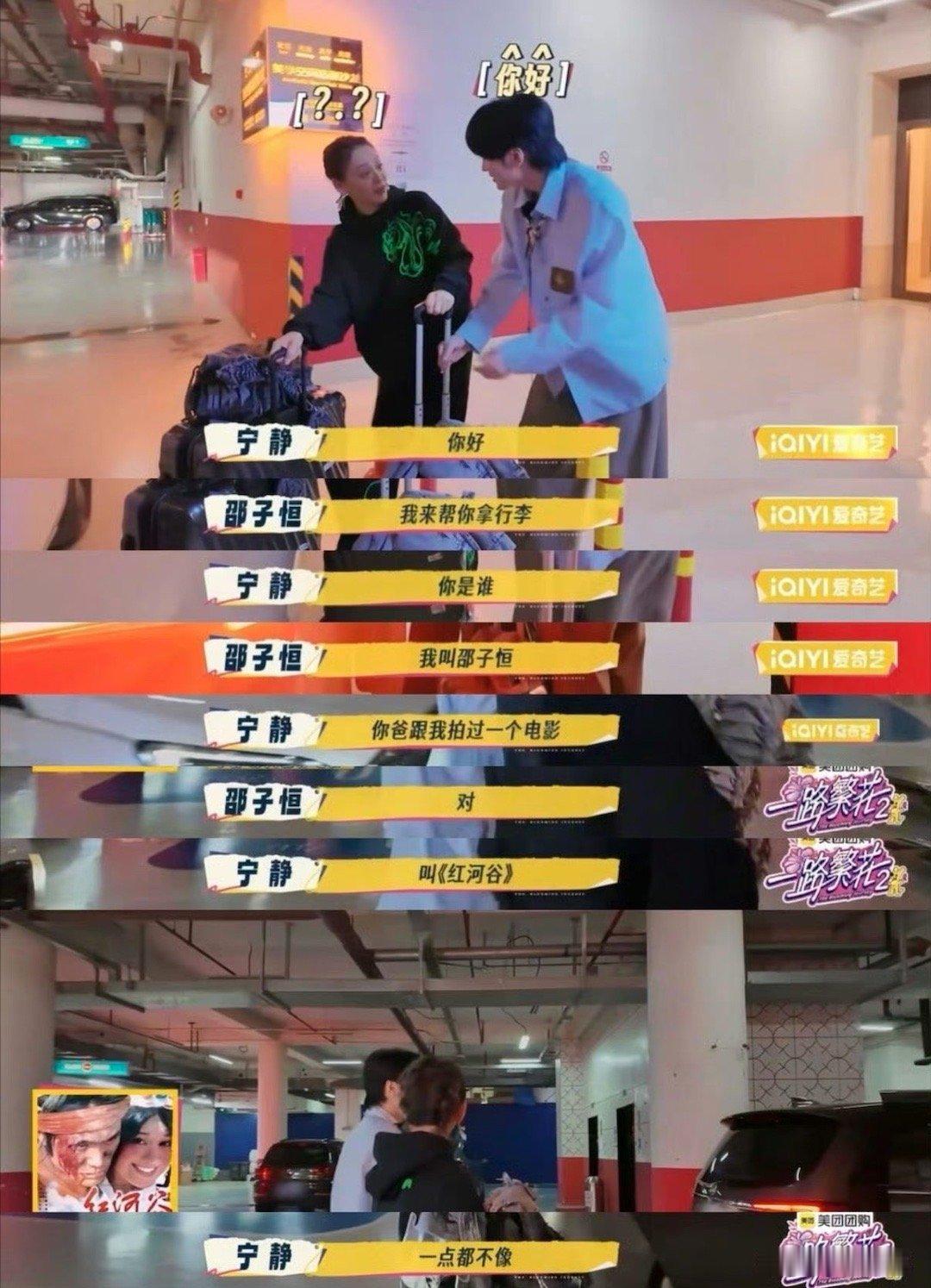 宁静说邵子恒长得不像邵兵 节目里邵子恒初见宁静时超懂事,主动帮忙拿行李并自我介绍,宁静见状直接笑着说“你跟他长得完全不像诶,一点都不像”,真实又可爱的反应超圈粉!随后邵兵打来视频电话,特意叮嘱儿子照顾好宁静,画面格外温馨~