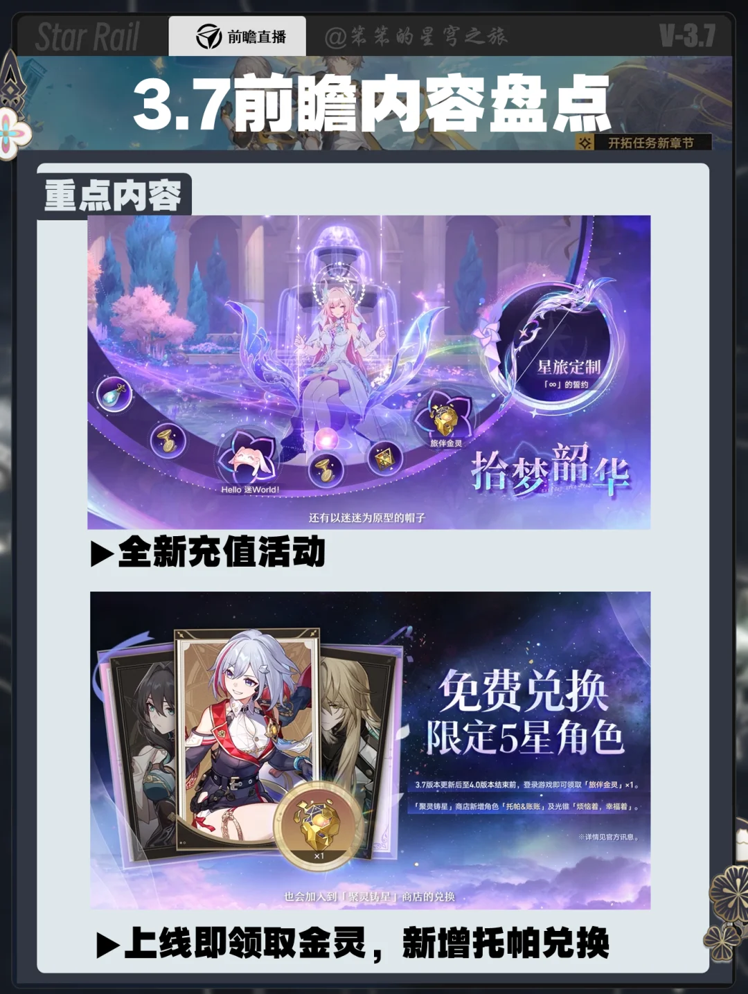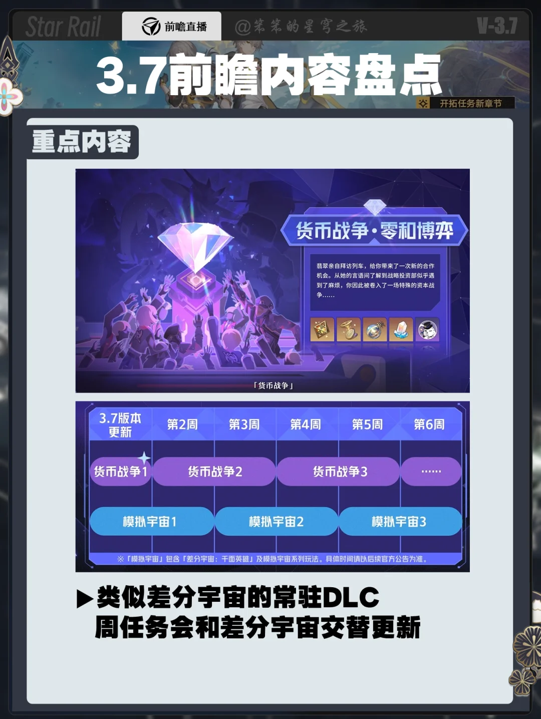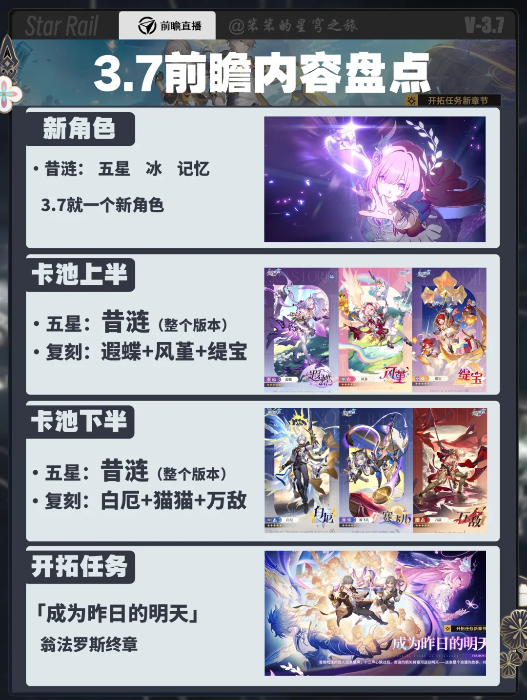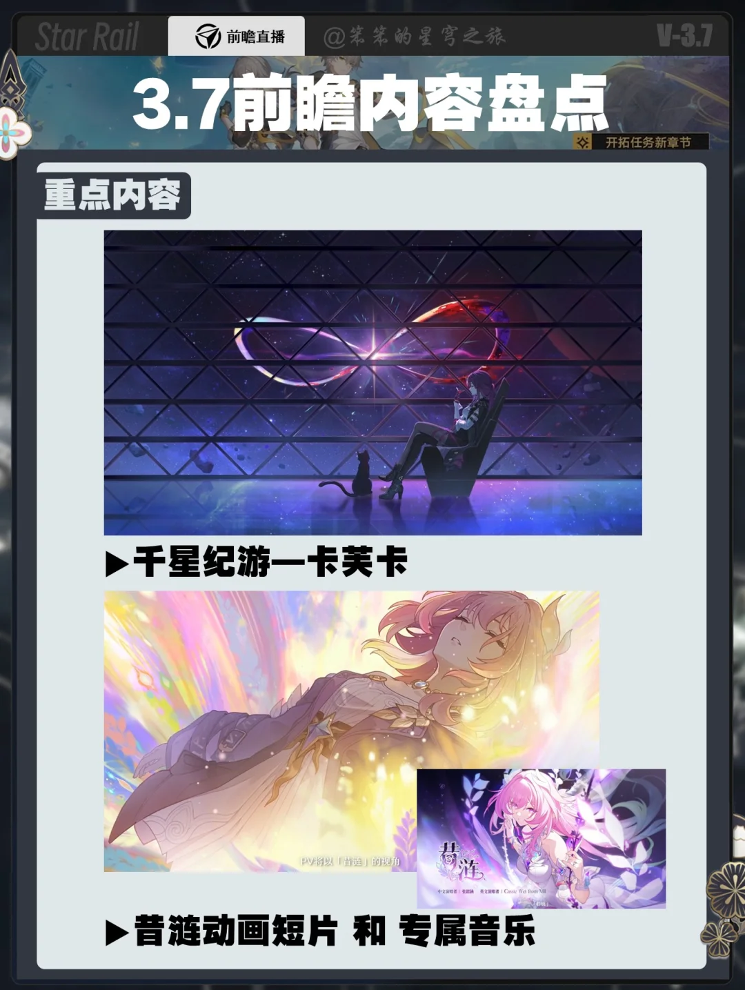 🐱大家好,我是笨笨的铲屎官 3.7版本前瞻直播来了 昔涟贯穿整个版本 新增常驻DLC货币战争 笨笨的铲屎有点期待新的千星纪游 有卡妈出镜哦
