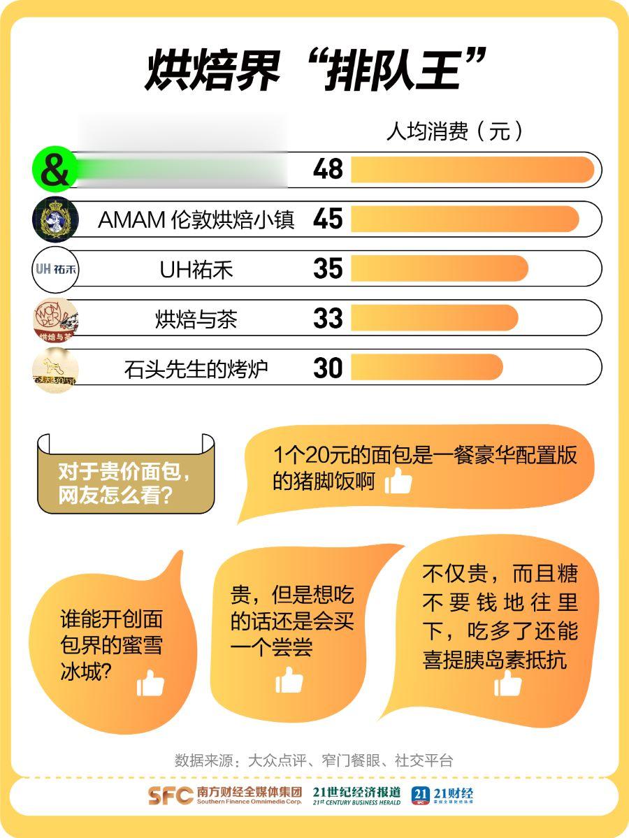 值得注意的是,均价60元以上的新一波高端烘焙品牌快速已经在一二线城市扩张。在社交媒体平台上,关于“贵价面包”店的讨论帖又热闹了起来。不少人吐槽:“20元面包顶得上一顿豪华猪脚饭”“不仅贵,还高糖分”。